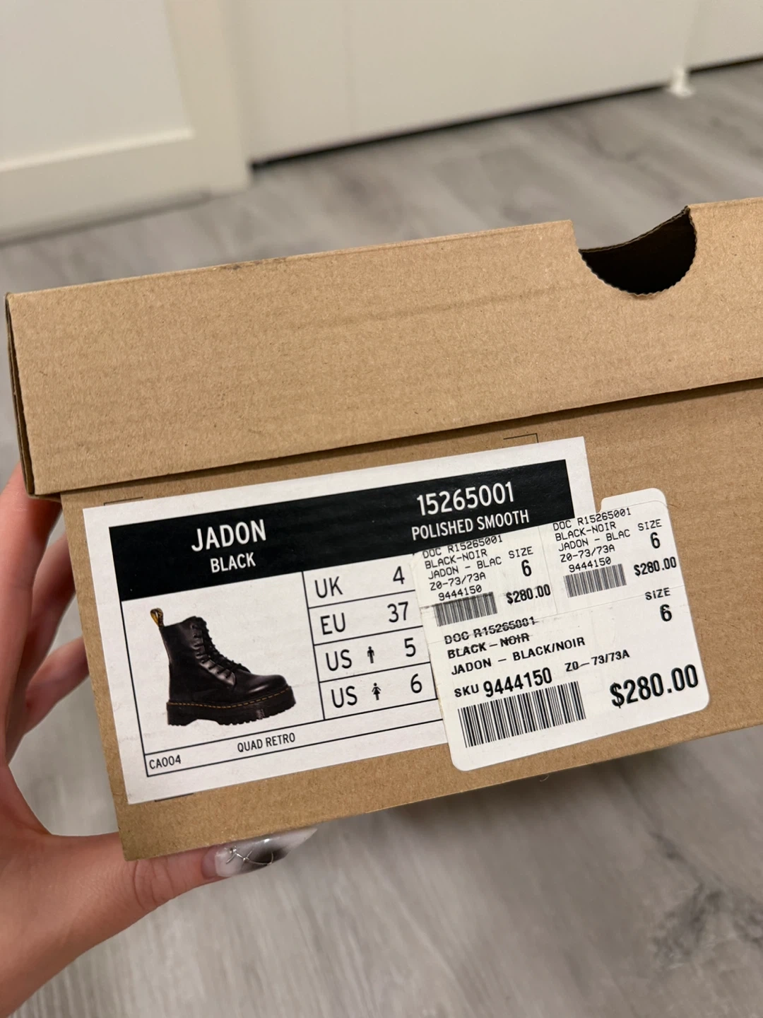Selling a pair of Dr. Martens Jadon platform boots in black! These are a US size 6. They come with the original box. Retails for $280.00