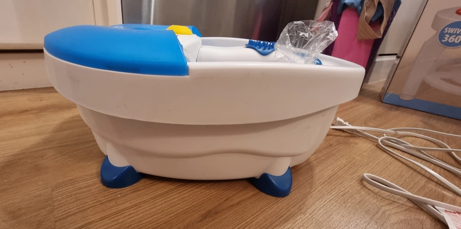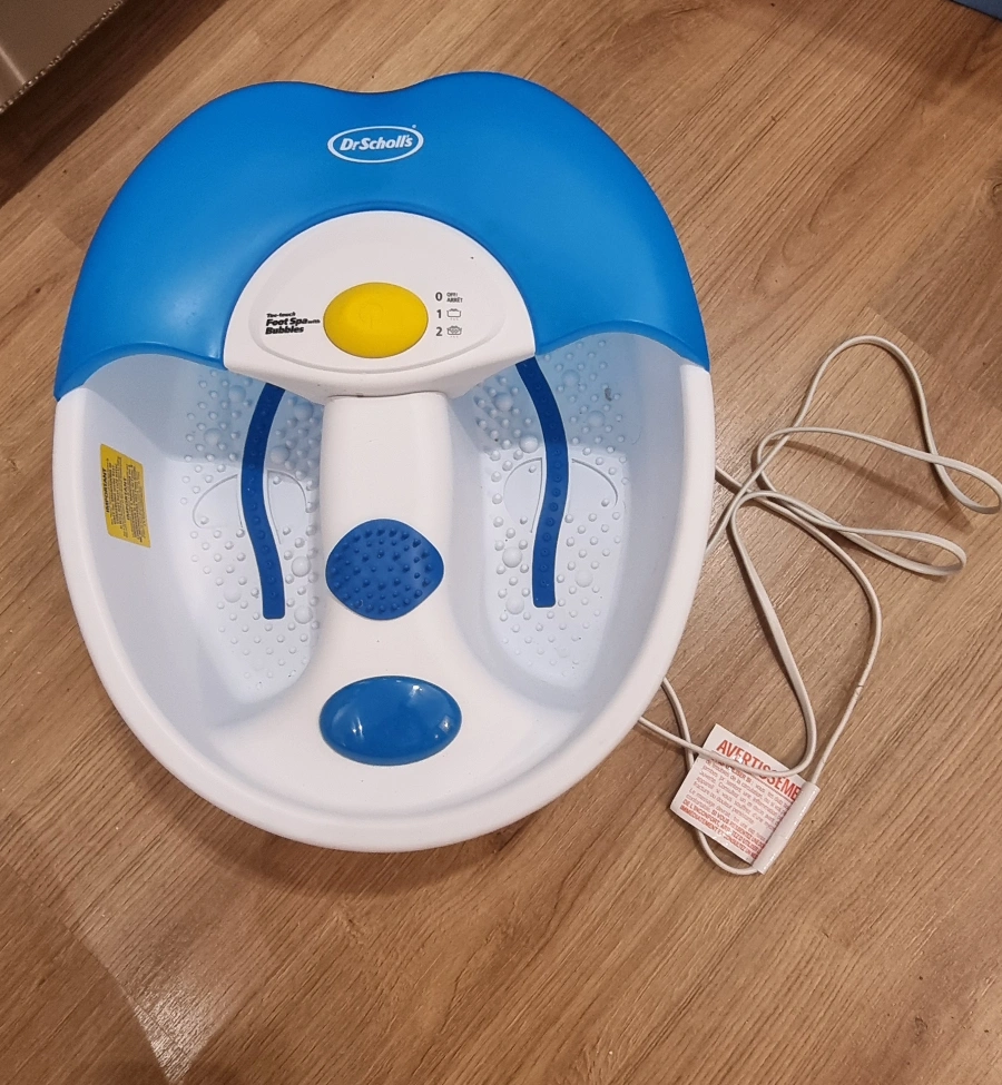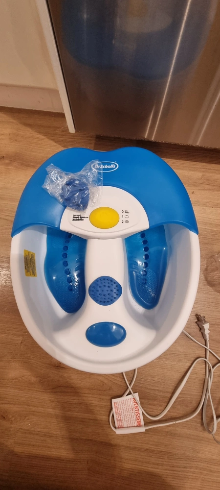 Selling a Dr. Scholl's foot spa. It's in good condition and ready to help you relax after a long day. It features a blue and white design and is easy to use. Perfect for at-home pedicures and soothing tired feet.