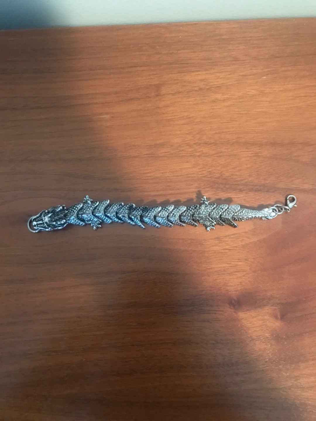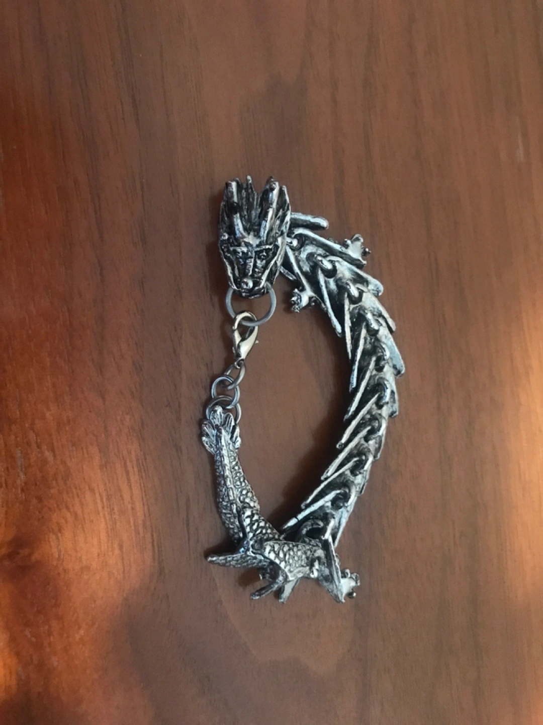 Selling a cool dragon bracelet! It's silver in colour and has a unique design. Great for adding a bit of edge to your style!