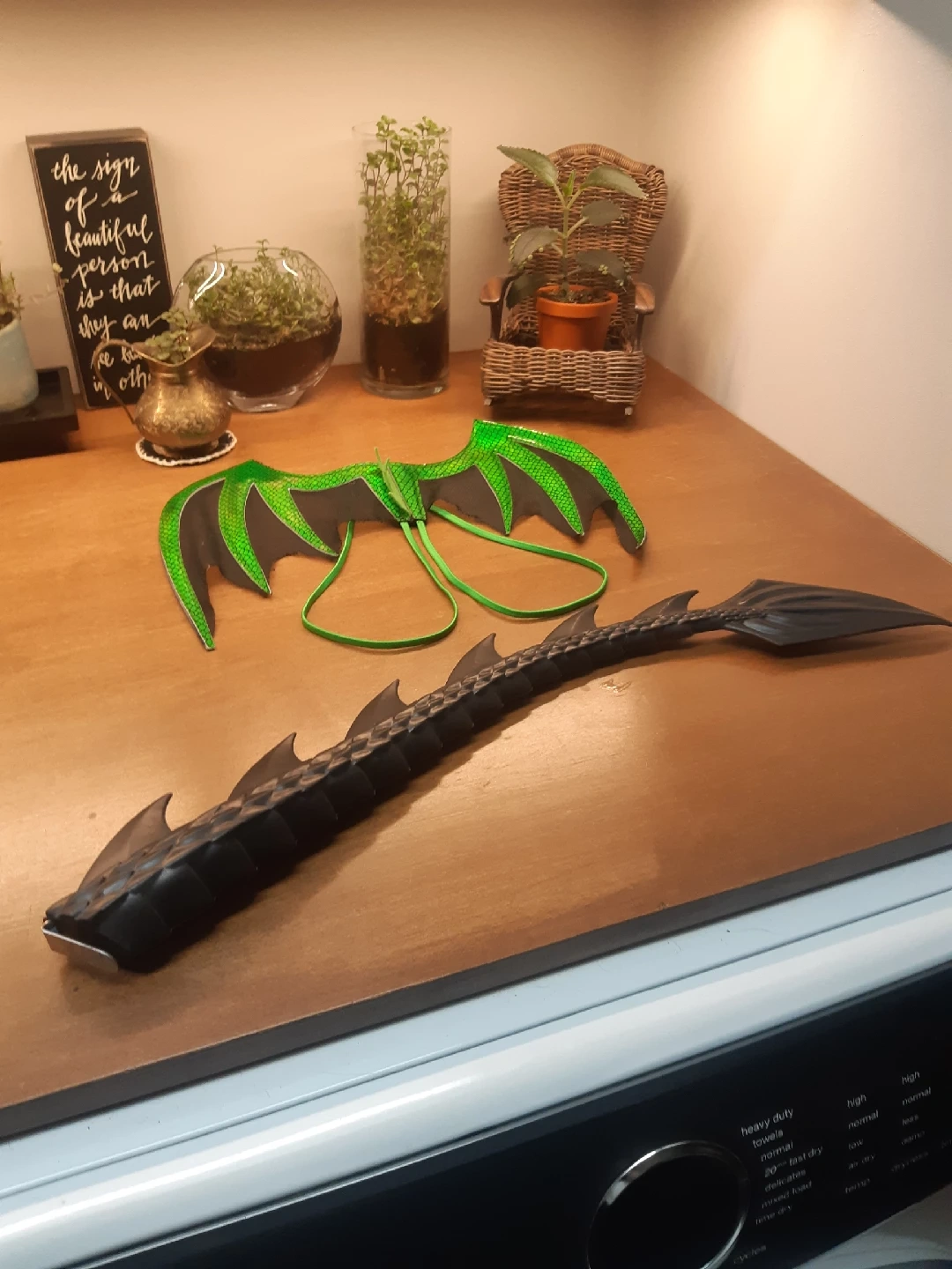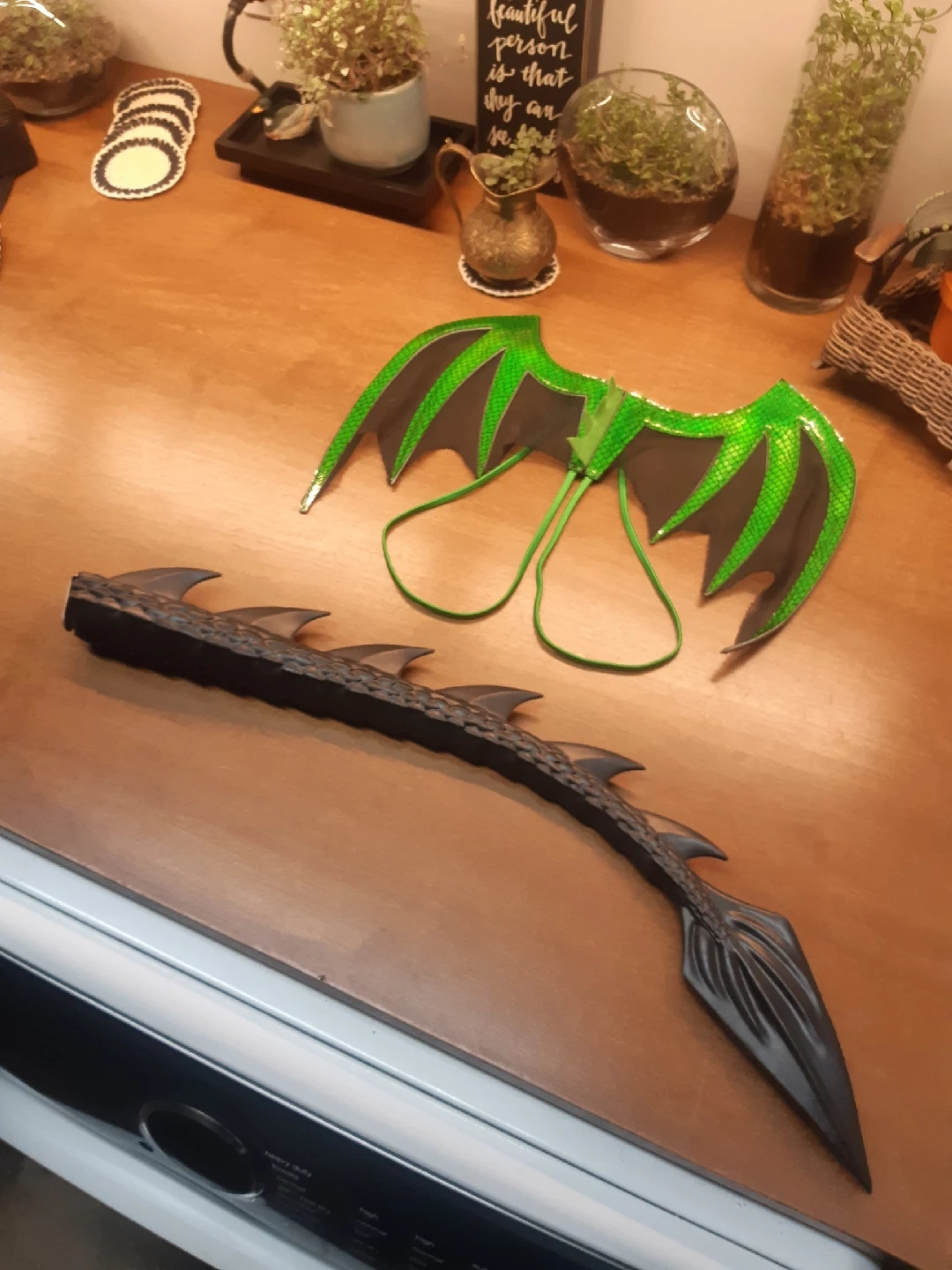 Dragon Wings and Tail Halloween Costume. Vibrant green and black dragon wings + black dragon tail. Cool and fun Halloween costume. 15.00 obo Located in braeside SW. Meetup options available. Crossposted. Feel free to check out my other listings for more finds. Deals on bundles.