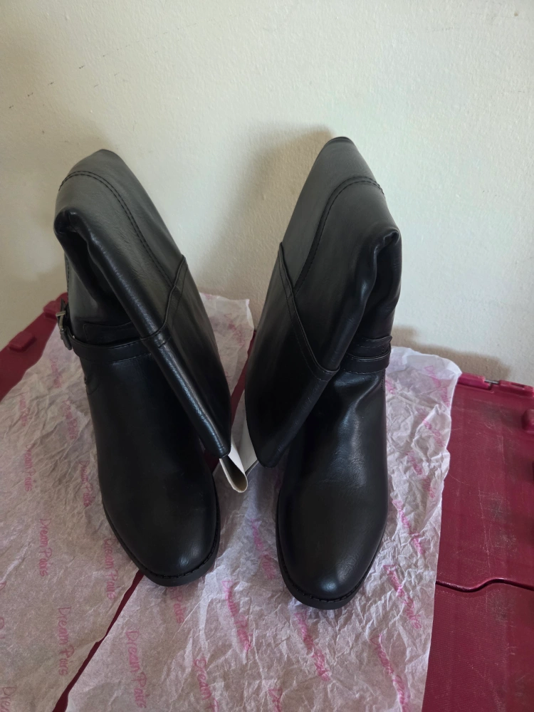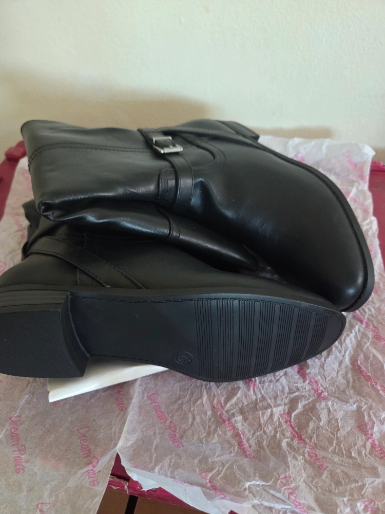 Selling a pair of black Dream Pairs boots, size 6. They feature a stylish buckle detail and a comfortable heel height. Great for adding a touch of chic to any outfit!