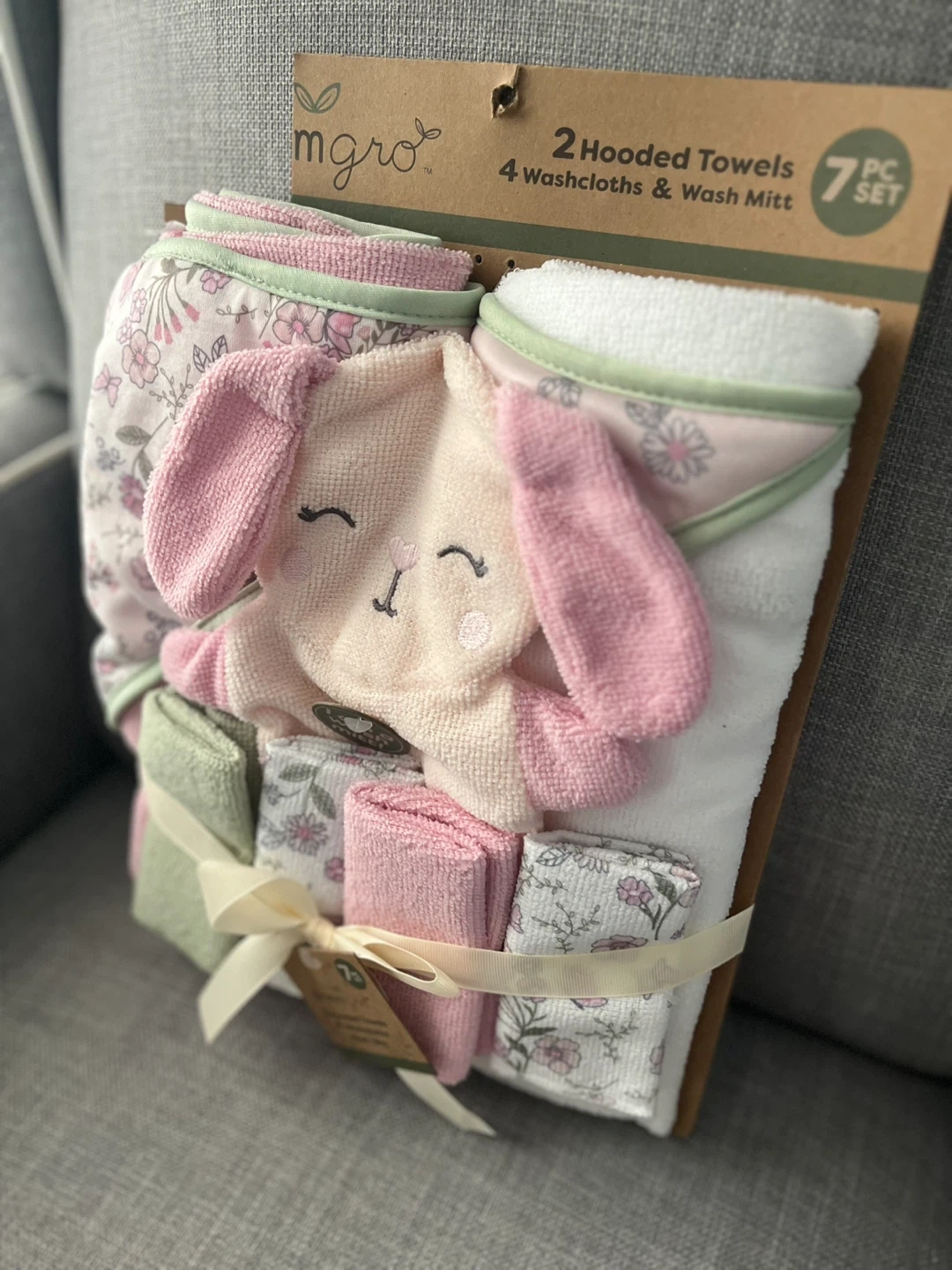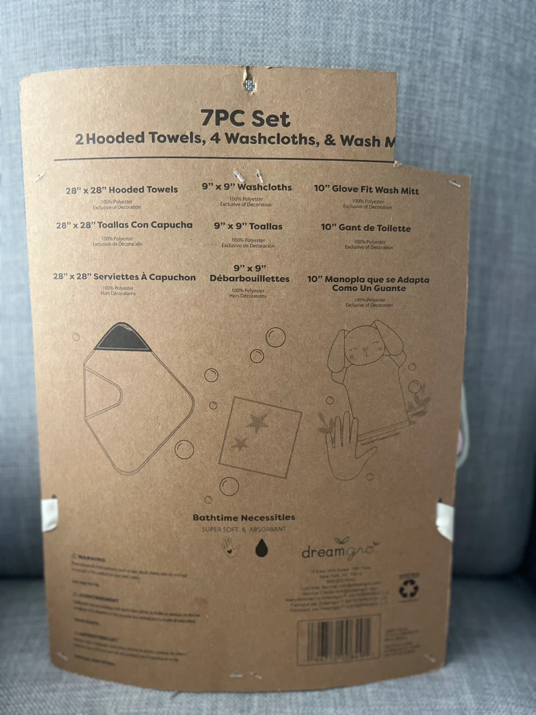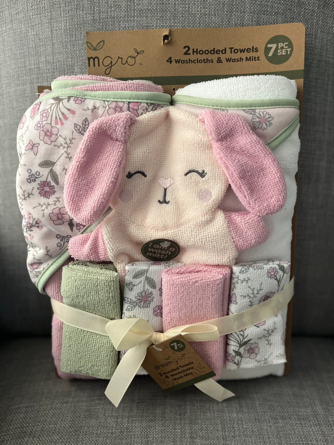 Brand new Dreamgro 7-piece set for baby! Includes 2 hooded towels, 4 washcloths, and a wash mitt. The towels are 28" x 28", and the washcloths are 9" x 9". Super soft and absorbent, perfect for bathtime. Retails for $30 📍Winston Churchill & Britannia, Mississauga 💰Bundle with other items I’ve listed for a discount! 📅 Let’s save each other time. Share your availability upfront - fastest pickup wins :)