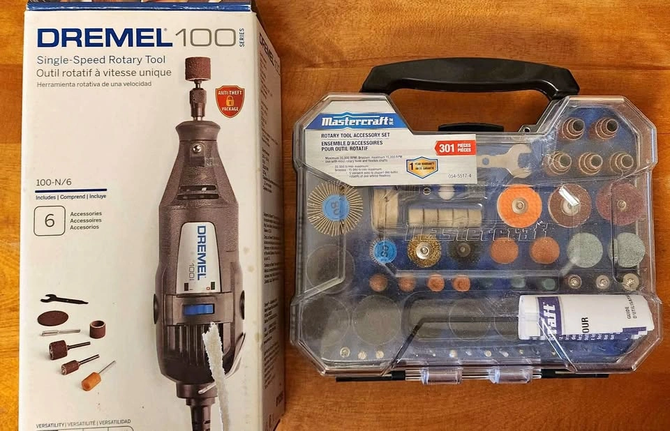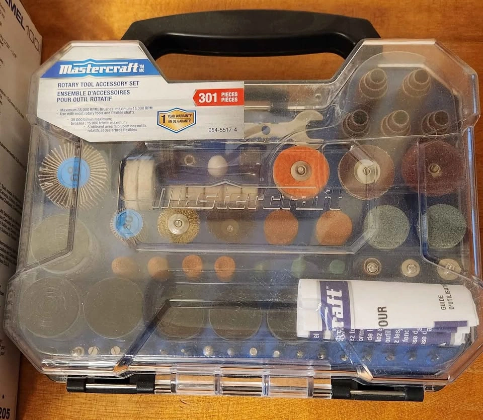 Dremel 100-N/6 Single Speed Rotary Tool Kit with 6 Accessories Mastercraft Multi-Purpose Rotary Tool Accessory Bit Set with Storage Case 301-pc Used twice. Basically new. Let me know if you're interested!