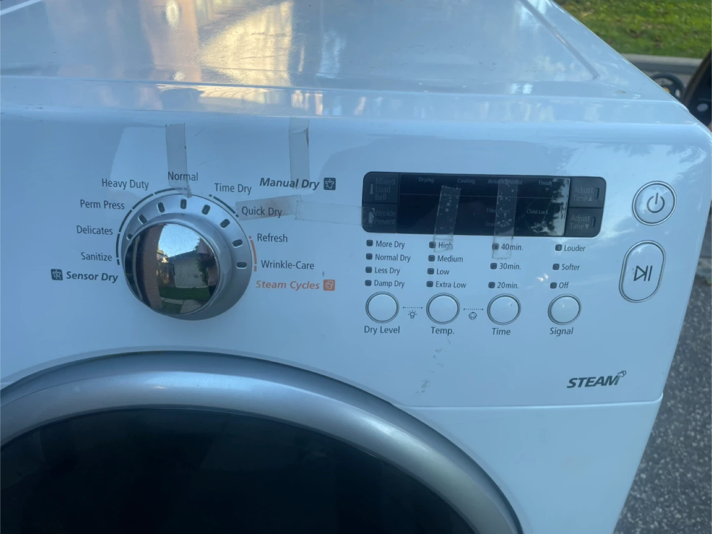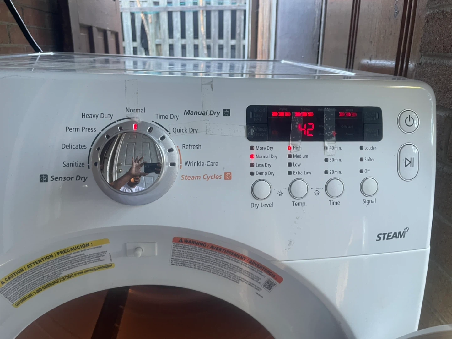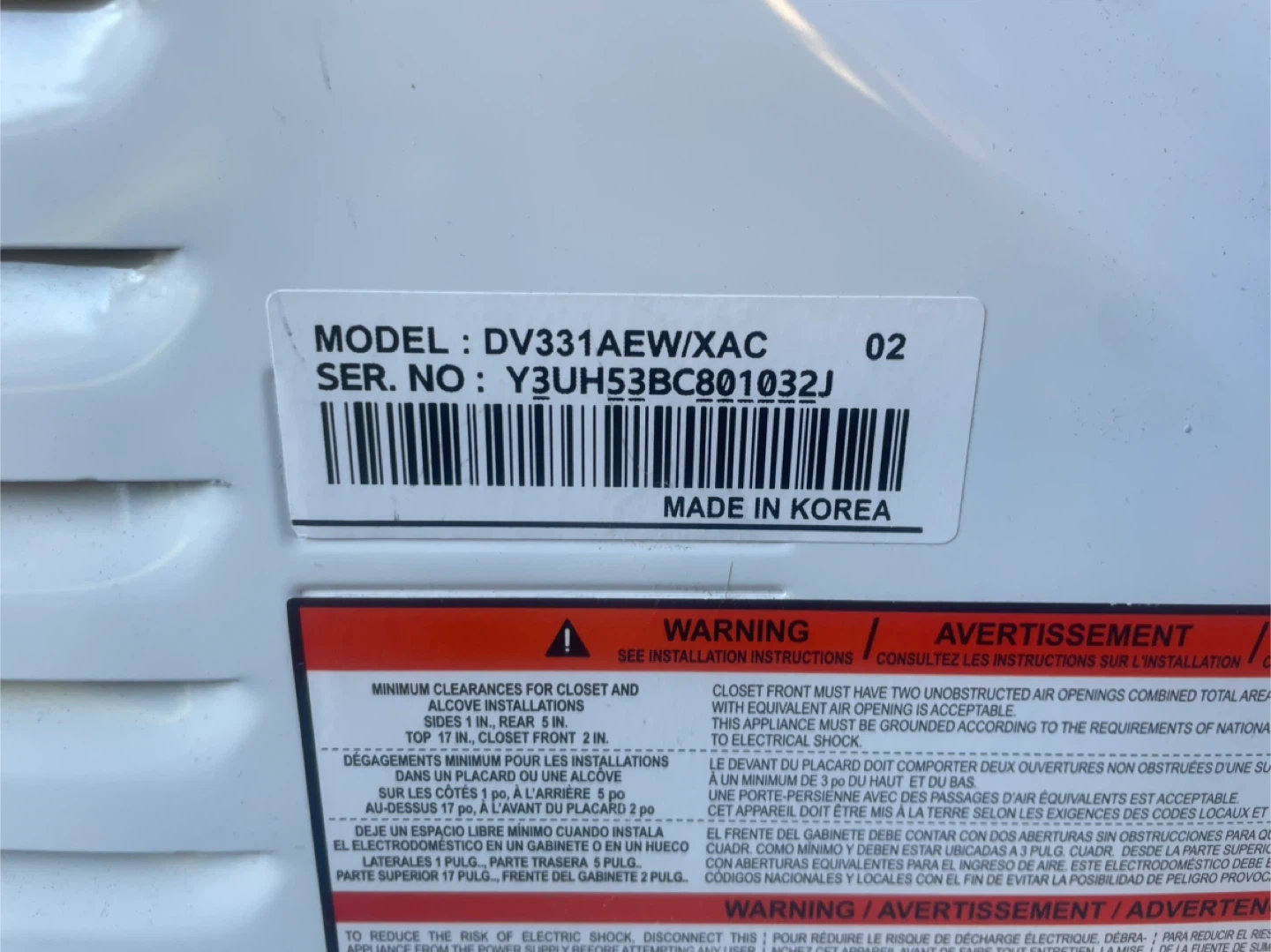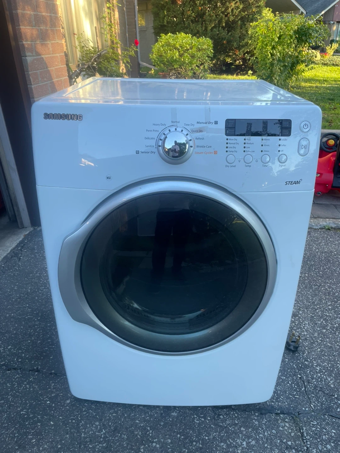 It’s Samsung’s Dryer- 240 volt Model - DV331AEW/XAC It’s used & working condition Wide 27”, Hight 38“ Cash and pickup Location- brimley and Lawrence Delivery available if possible only Thank you