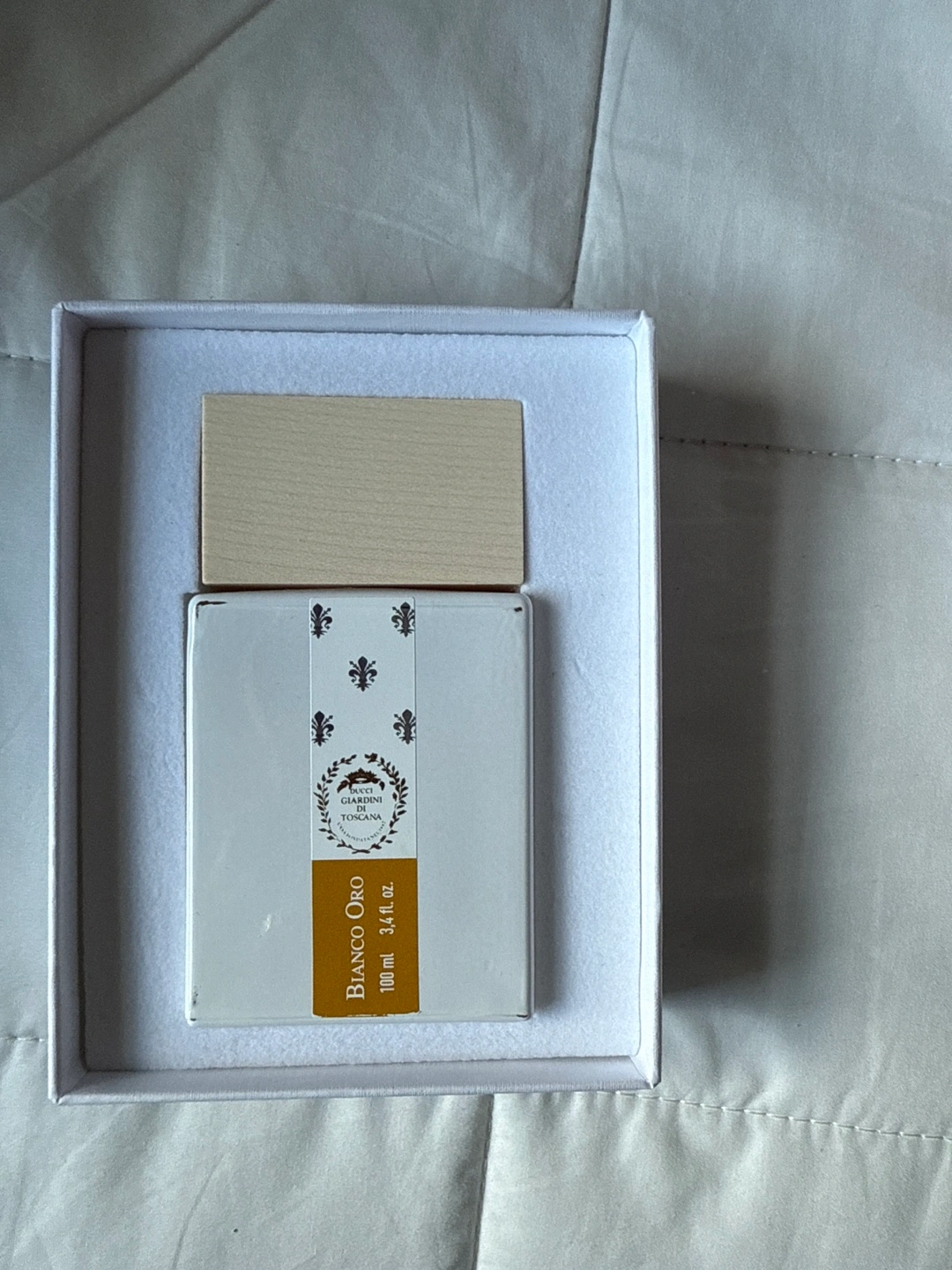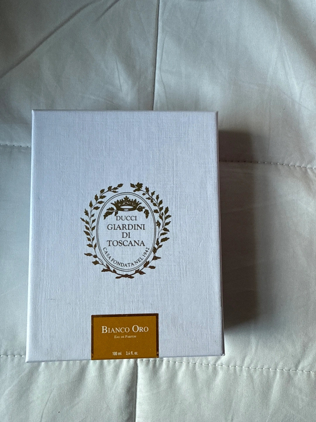 Selling a bottle of Ducci Giardini di Toscana Bianco Oro Eau de Parfum. It comes in a 100ml (3.4 fl oz) bottle. The box is included, so it's perfect for gifting or keeping it protected