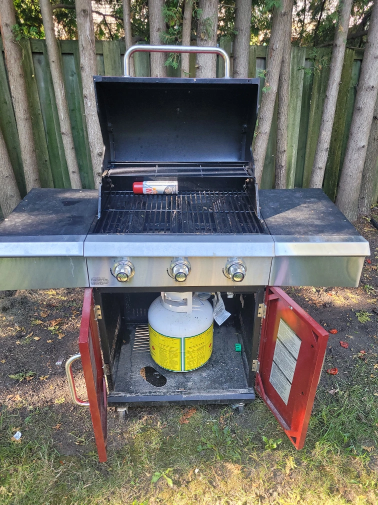 Selling a Dyna-Glo propane BBQ grill in red. It has a sleek design and is perfect for grilling season. This grill is ready to help you make some delicious meals for your family and friends! it comes with full propane tank.