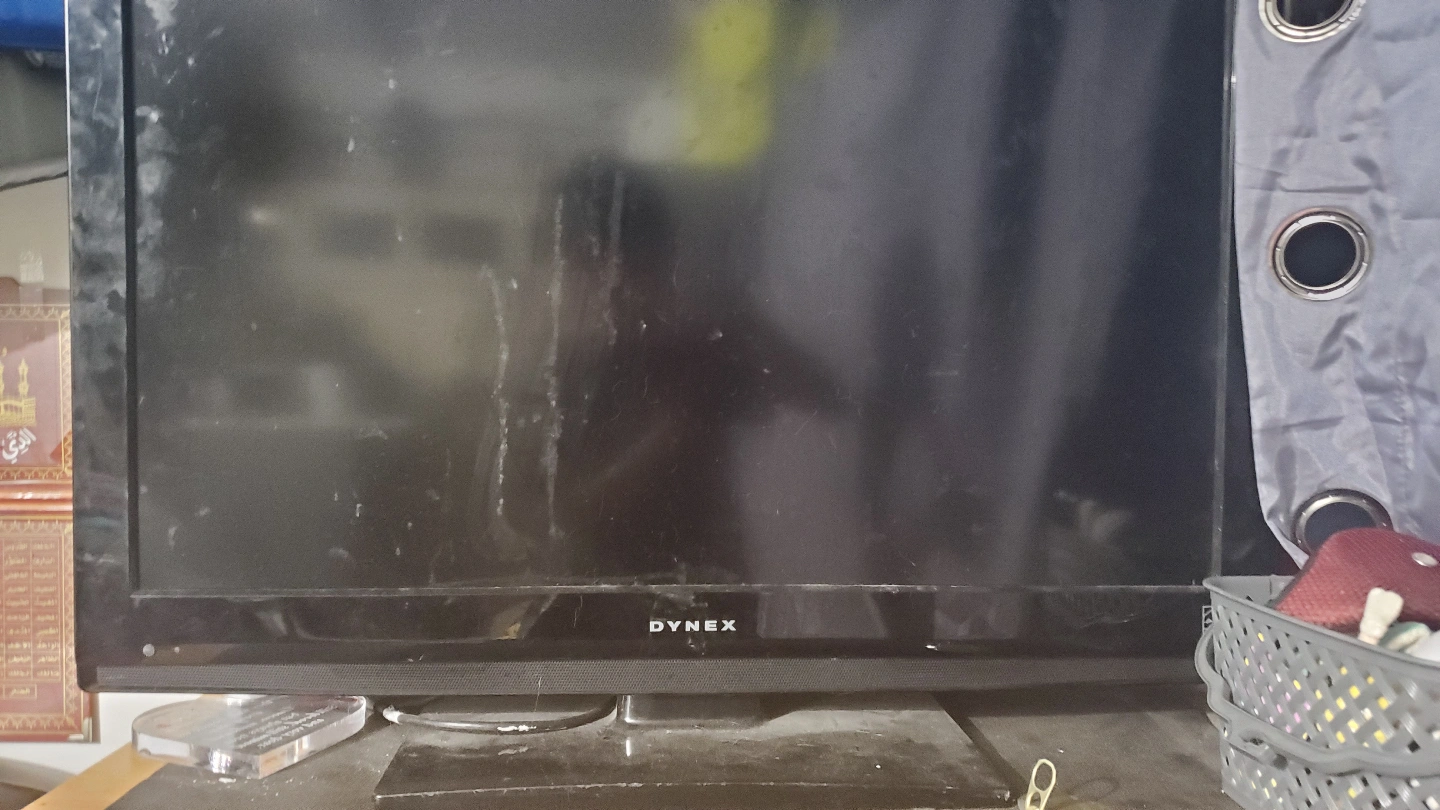 Functional 19-inch Dynex LCD television. Features include multiple input options. Shows some wear. (Couldn't Take pics of other ports at the back)