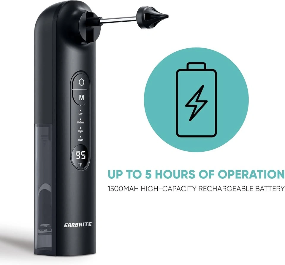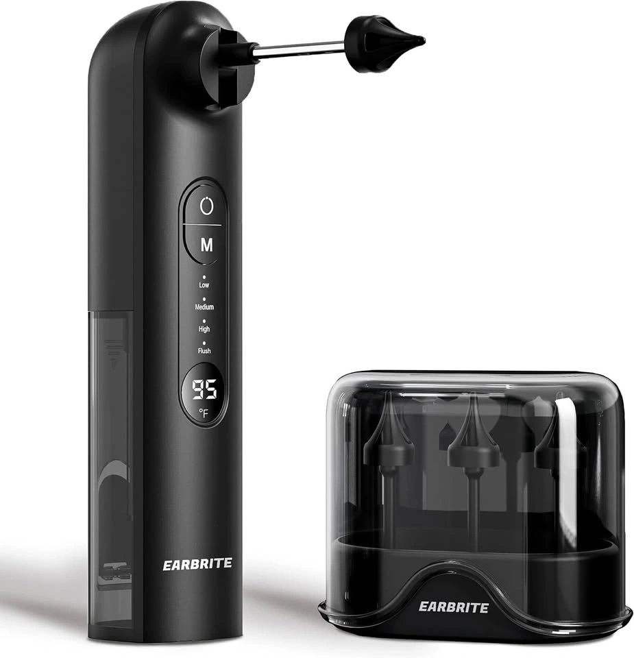 EarBrite Electric Earwax Removal Kit - Professional Water Powered Flush Irrigation Lavage Cleaning Unclogger System Machine for Clogged Ears - Ear Canal Cleaner Washer Flosser Flusher Device