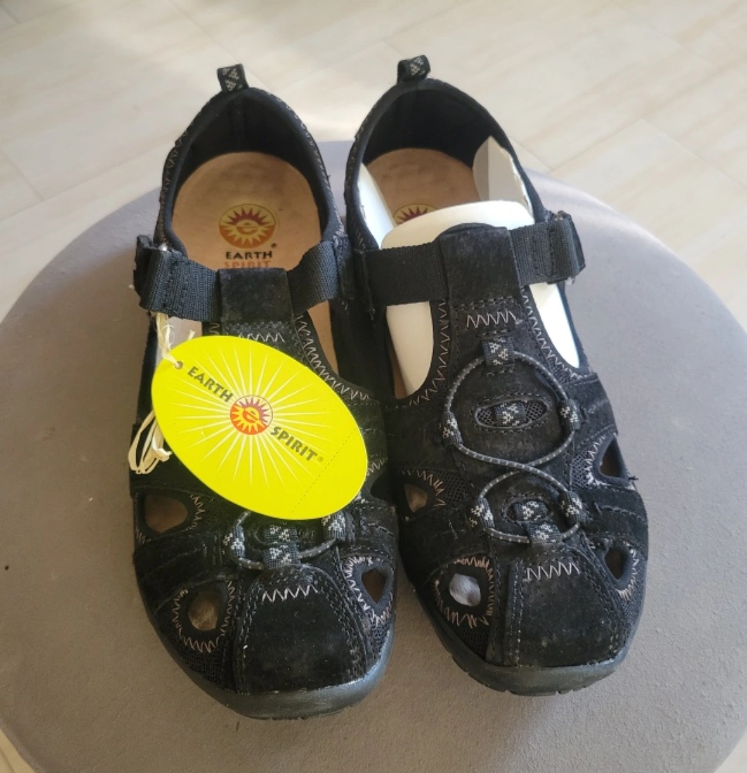 These Earth Spirit shoes are brand new with tags! They are black and a size 7.5. The original price was $35. They have a unique design with a strap and decorative lacing. Perfect for adding a touch of style to your everyday look!
