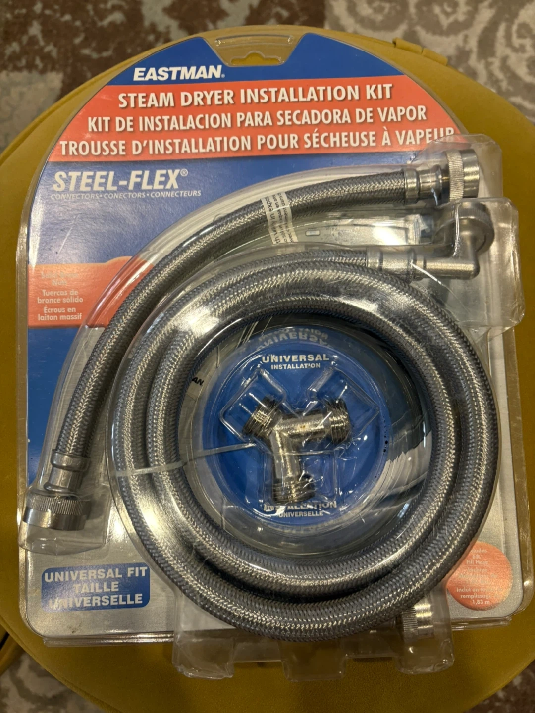 Selling a brand new Eastman Steam Dryer Installation Kit! It's a STEEL-FLEX connector with universal fit. Includes solid brass nuts. Perfect for your steam dryer installation needs