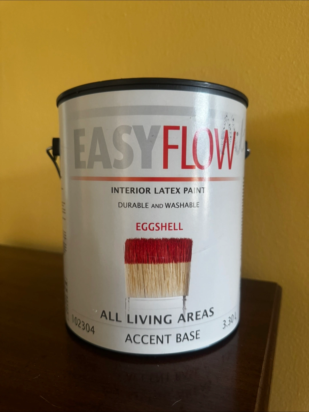 Easy Flow Interior Latex Paint, perfect for all living areas! It's durable and washable with an eggshell finish. Full gallon available of each color: Grey Avocado green Yellow Blue $20 each