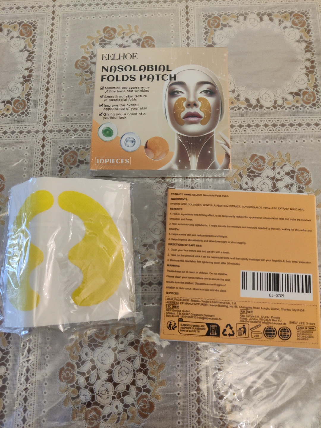Here are EELHOE Nasolabial Folds Patches to help minimize the appearance of fine lines and wrinkles Each patch helps to smooth skin texture and improve the overall appearance of your skin Quantity: 10pcs Main ingredients include Centella Asiatica Extract, Hydrolyzed Collagen, Aloe Vera Leaf Extract, Glycerin, and Kojic Acid From a no pet non smoking home Meetup near Finch and Yonge Cash only Please check other listings on my profile :)