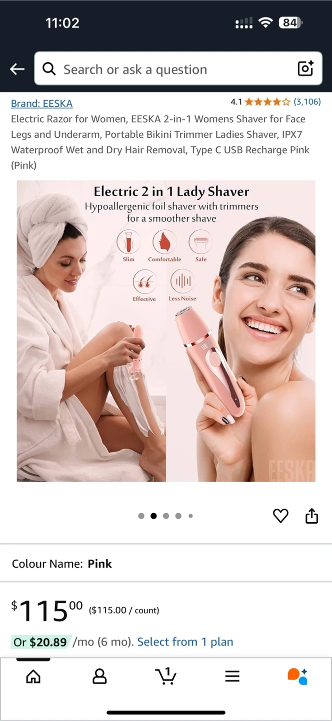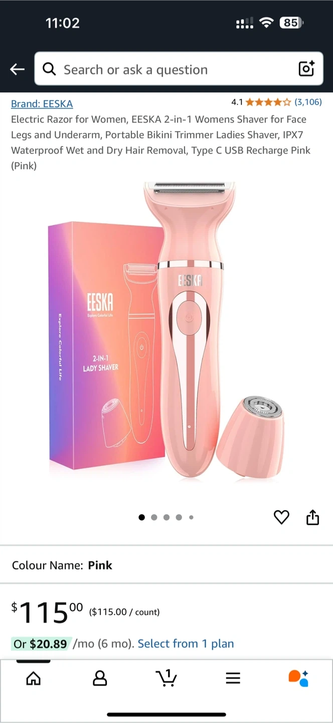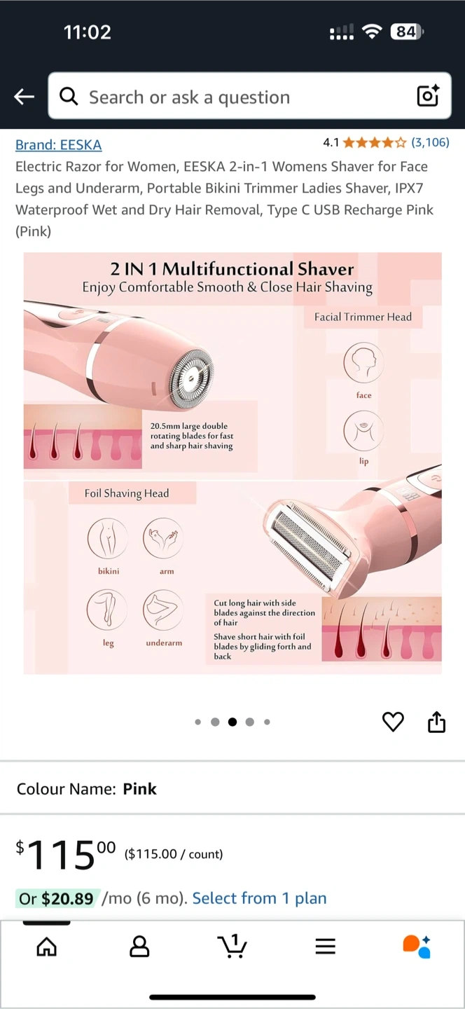 Looking to sell my EESKA 2-in-1 Ladies Shaver in pink! It's a cordless, Type-C USB rechargeable shaver, convenient for home and travel use. It's waterproof and can be used wet or dry. It has a facial trimmer head and a foil shaving head for comfortable, smooth, and close hair shaving. Originally bought for $115!