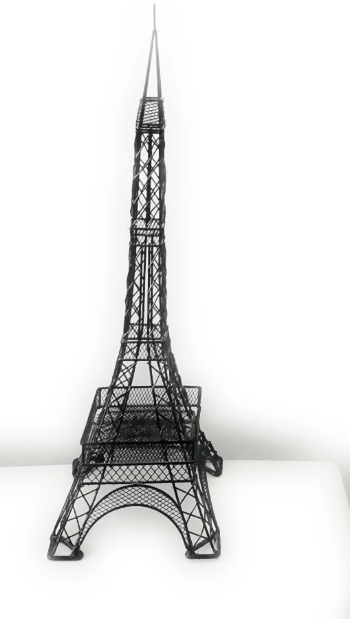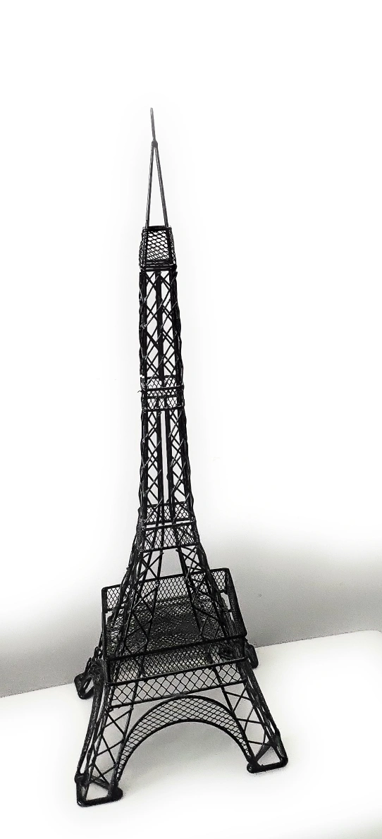 Here's a lovely Eiffel Tower figurine, perfect for adding a touch of Parisian charm to your space! It's made of metal and has a classic, detailed design. A great decorative piece for any room!