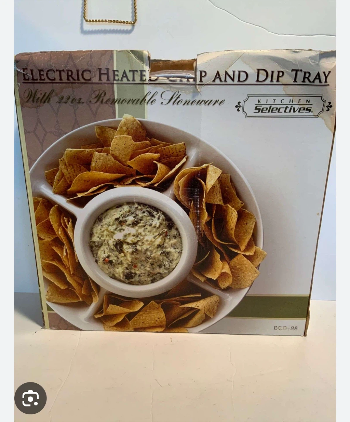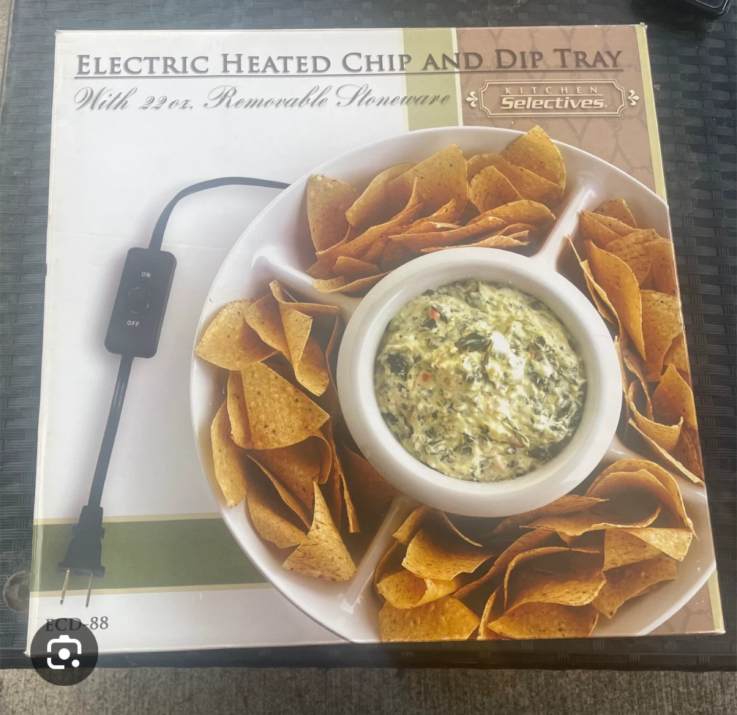 Selling a Kitchen Selectives electric heated chip and dip tray! It comes with a 22 oz removable stoneware insert. Perfect for keeping your snacks warm during gatherings Location for pickup INTERSECTION OF KENNEDY DENISON ONE BLOCK NORTH OF STEELES CLOSE TO PACIFIC MALL