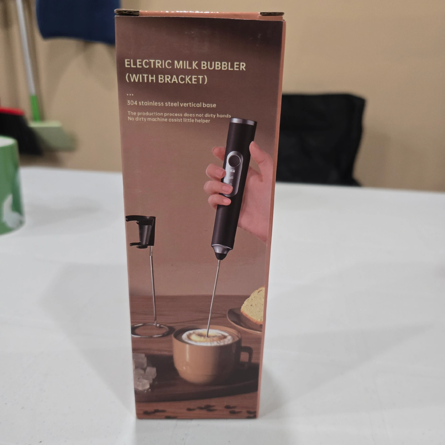 I'm selling an electric milk bubbler that comes with a bracket. It features a 304 stainless steel vertical base. The production process ensures it doesn't dirty your hands, and it's a little helper for your machine
