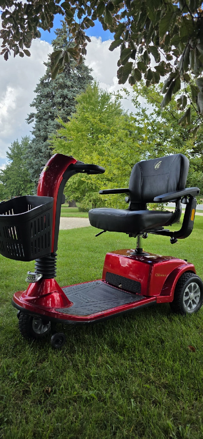 Selling electric scooter in red. It's in great shape and ready to go! Perfect for getting around with ease and comfort