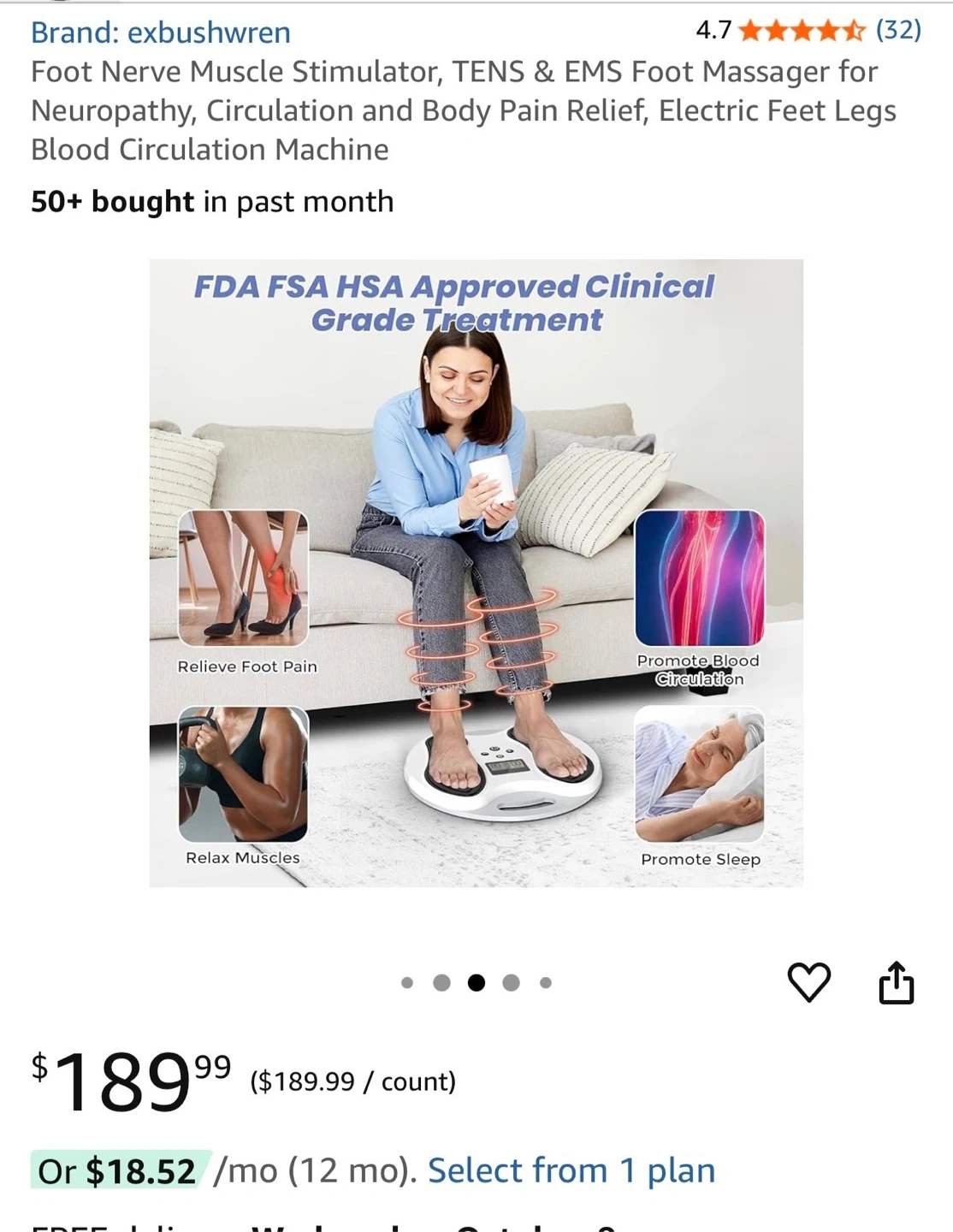 Selling a brand new electronic foot stimulator that uses clinically proven EMS technology. It has 12 pulse modes and 20 intensity levels, with a 30-minute default setting.