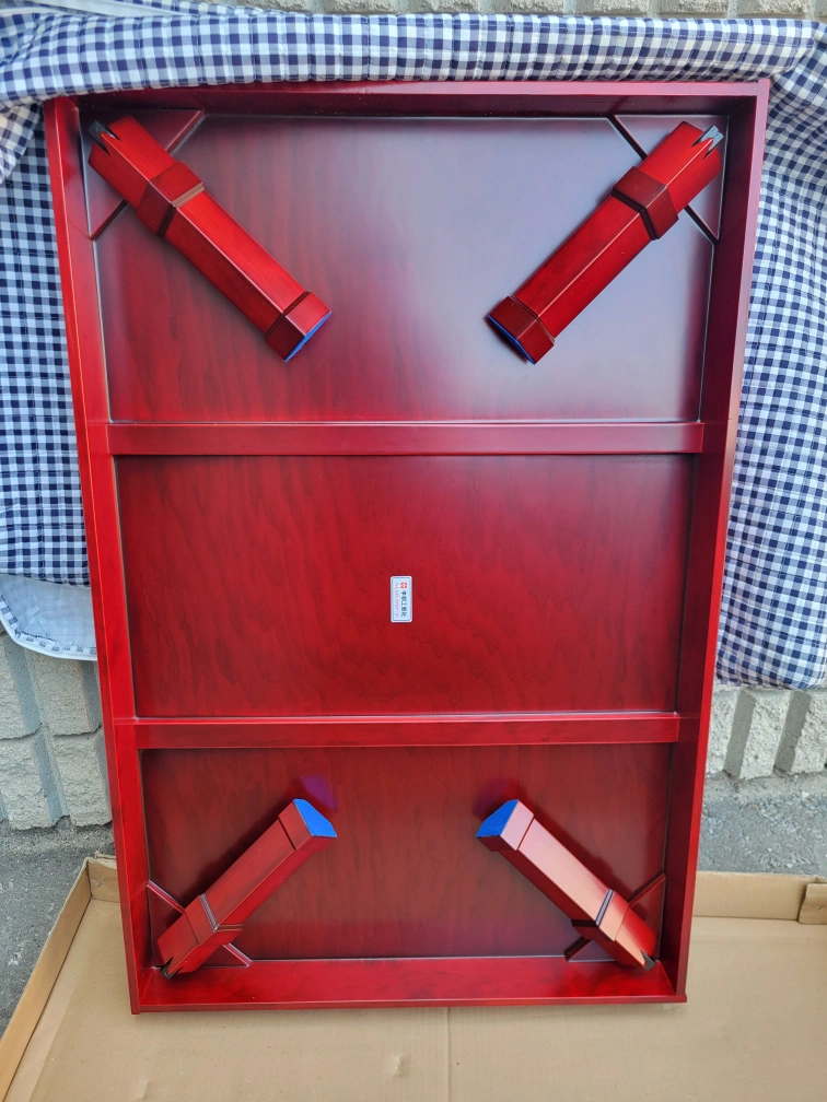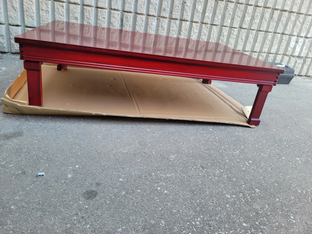 Elegant Wood Coffee Table – Folding Legs | Brand New in Box | Upgrade your space with this brand new solid red wood coffee table – stylish, sturdy, and space-saving! Perfect for condos, apartments, and small living areas thanks to its foldable legs for easy storage and transport. Product Highlights • Rich glossy red finish on wood • Folding legs for compact storage • Strong, pre-assembled frame • Never used – still in original packaging • Functional as a coffee table or modern accent piece Measurements • Length: 47" • Width: 31.5" • Height: 13" Asking Price: $160 each – or best offer (2 available)