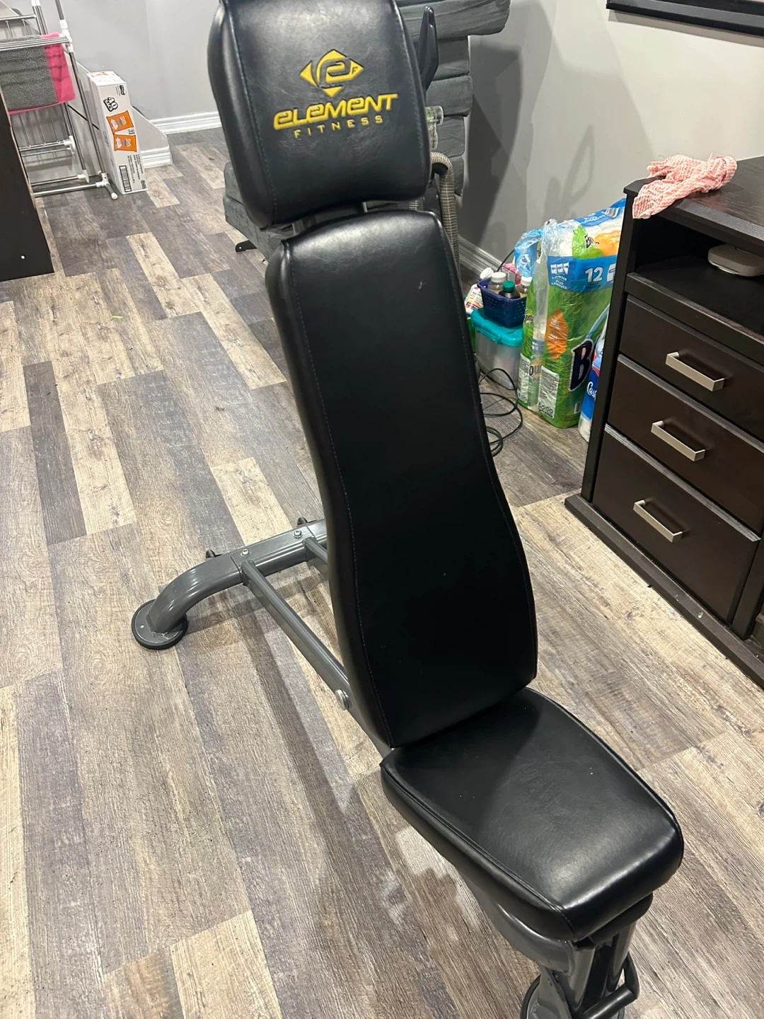 Selling an Element Fitness adjustable weight bench. It's in great shape and ready for your home gym! Perfect for various exercises and easily adjustable for different angles. Adjustable to 7 different angles.