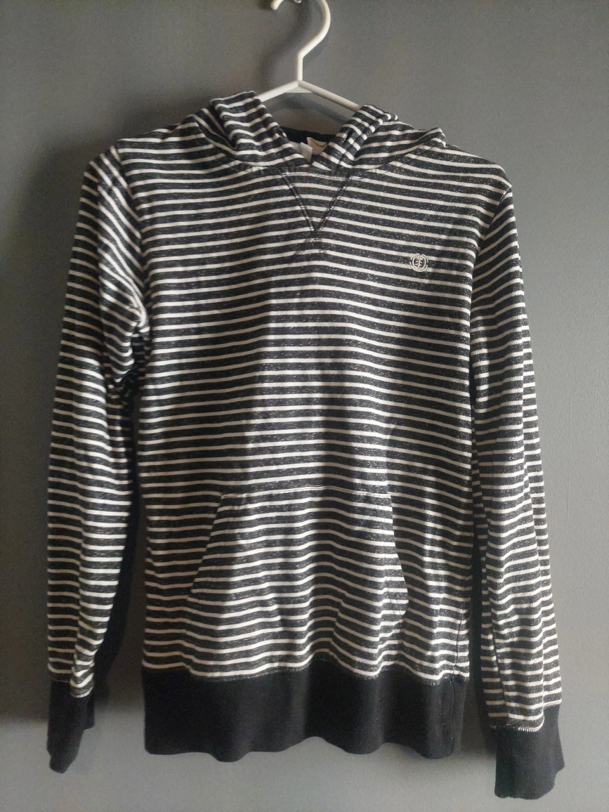 Selling an Element hoodie with a classic black and white striped design! It has a comfortable hood and a handy front pocket. Perfect for layering or wearing on its own