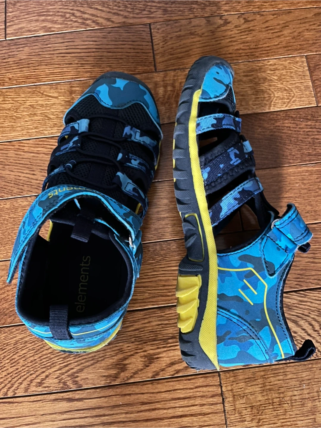 These Elements sandals are perfect for your little one! They feature a cool blue camouflage pattern with yellow accents. Great for summer adventures!
