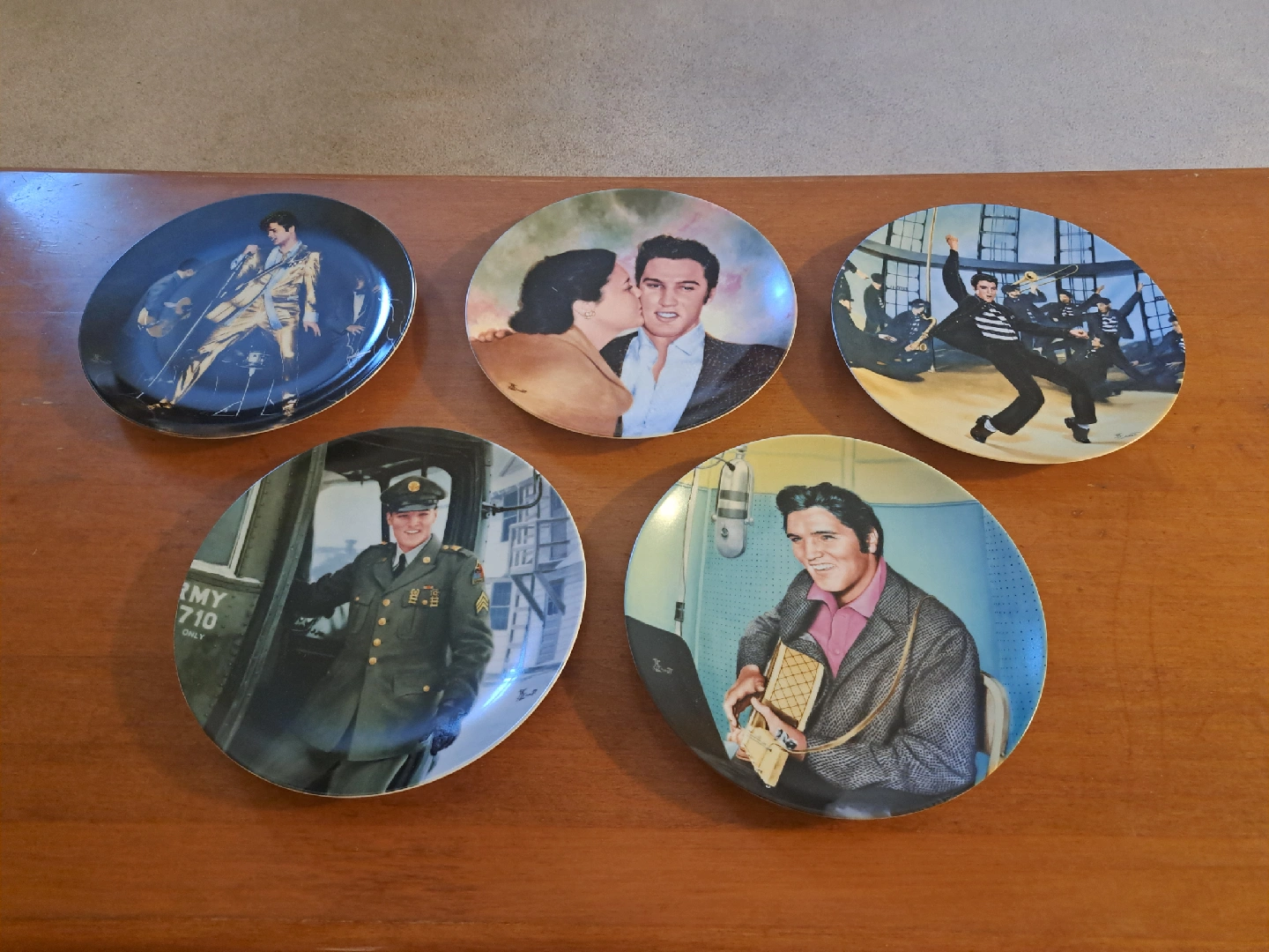 Selling a set of five Elvis Presley collector plates. Each plate features a different iconic image of the King. They're in great condition and ready to be displayed!