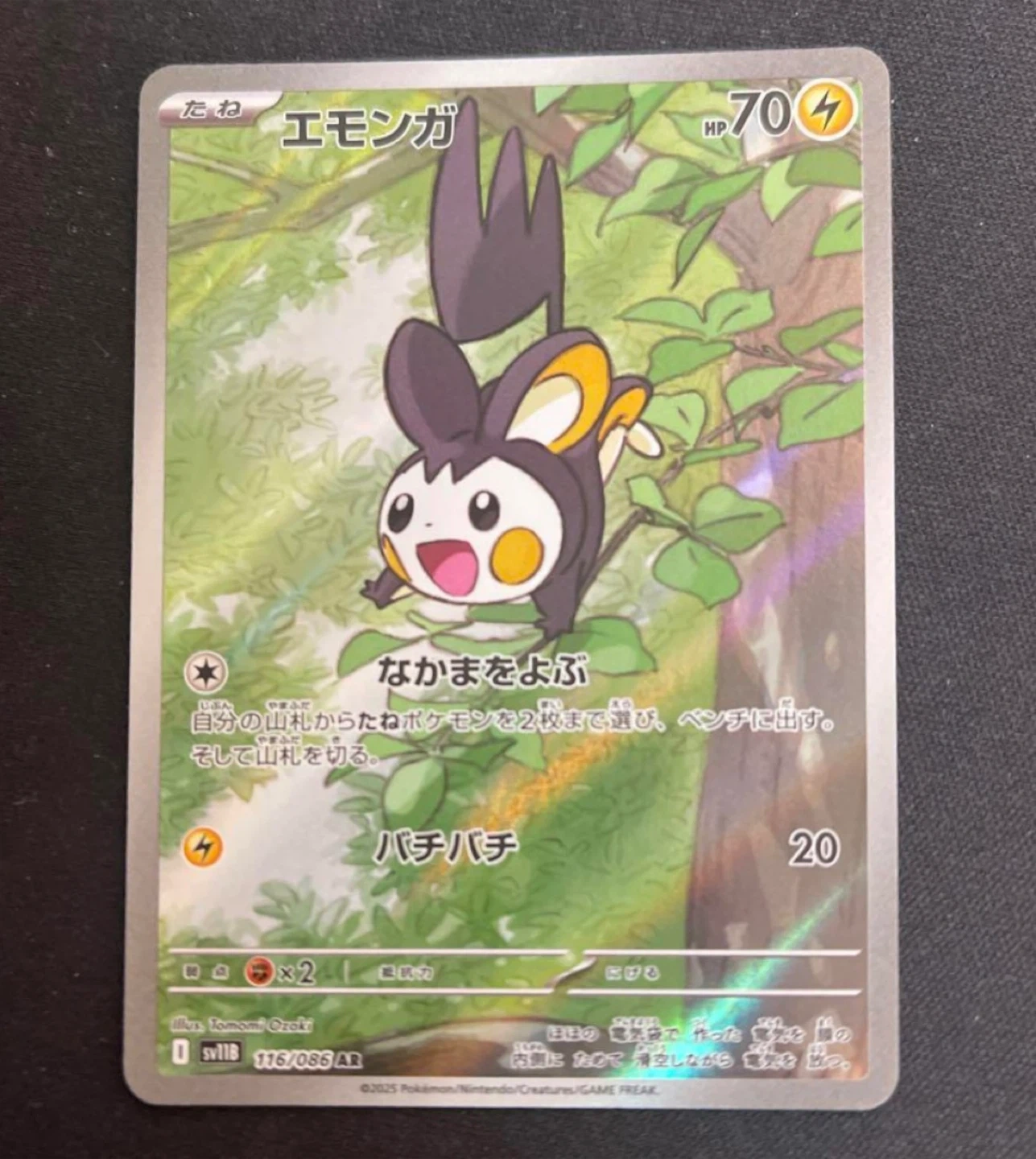 Selling an Emolga Pokemon card, number 116/086 AR. It features a cute Emonga character in a forest setting. A great addition to any Pokemon card collection!