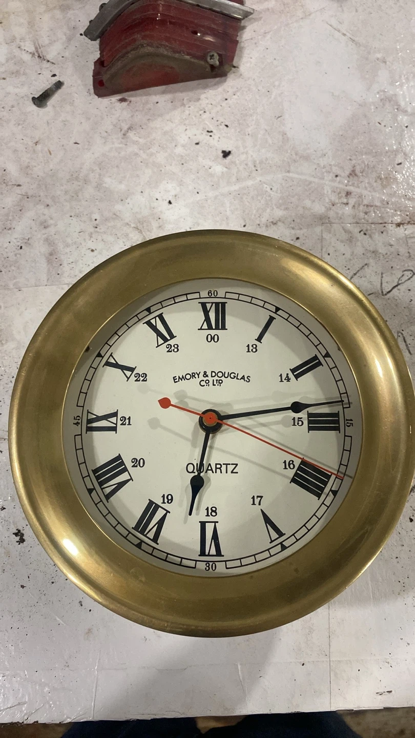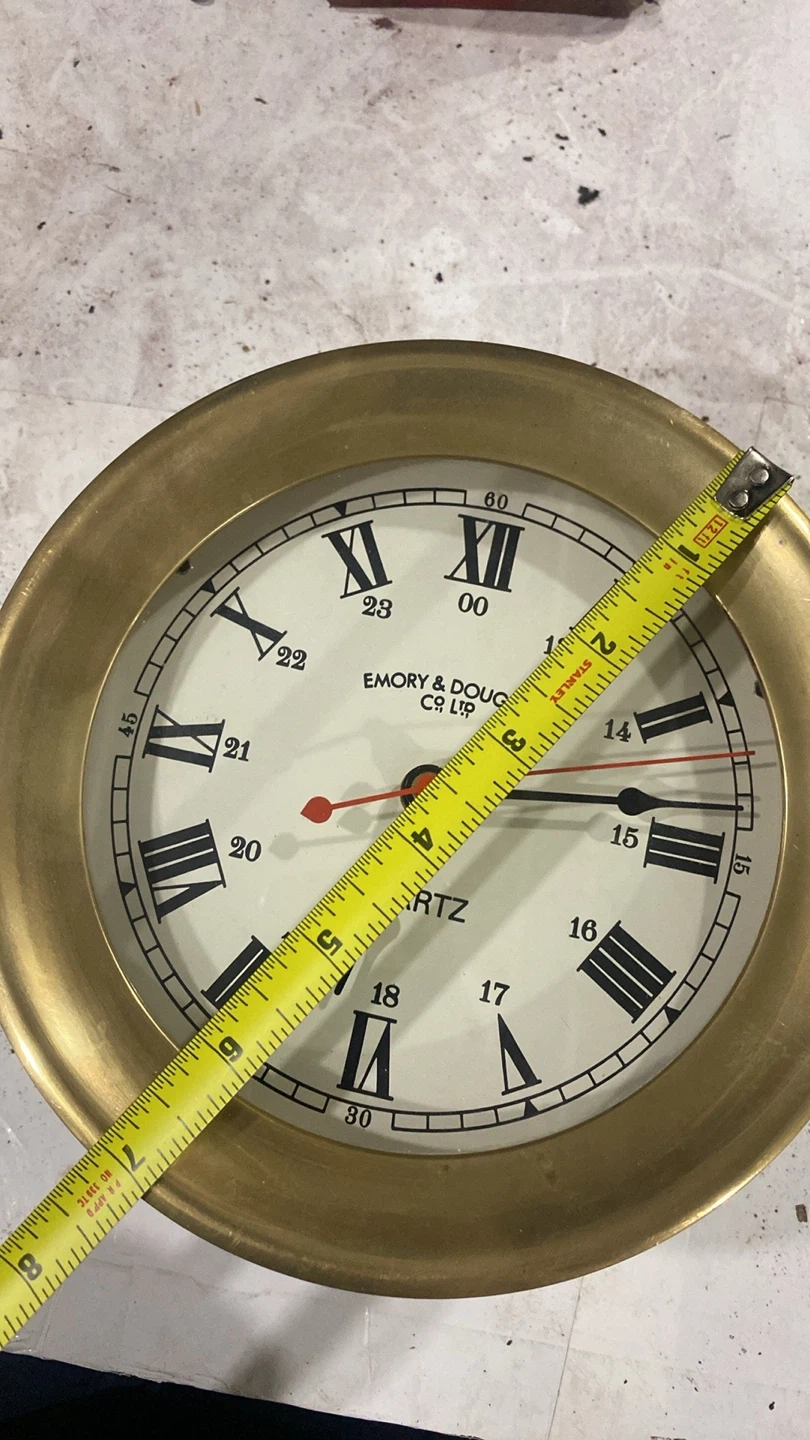 Selling a lovely Emory & Douglas Quartz wall clock. It's in great shape and would look fantastic in any room. The clock has a classic design with Roman numerals and a gold-tone finish. It measures about 7 inches in diameter.