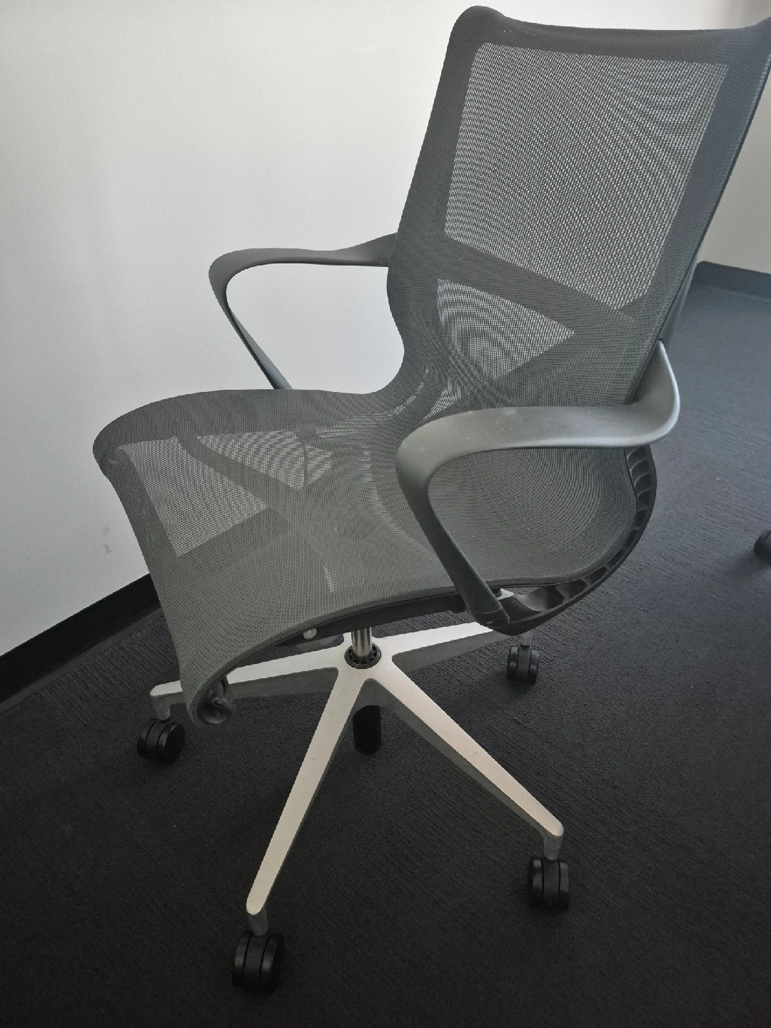 Selling a comfortable ergonomic office chair. It features a breathable mesh back and a sturdy base. Perfect for working from home or in the office. The chair is in good condition and ready for a new home!