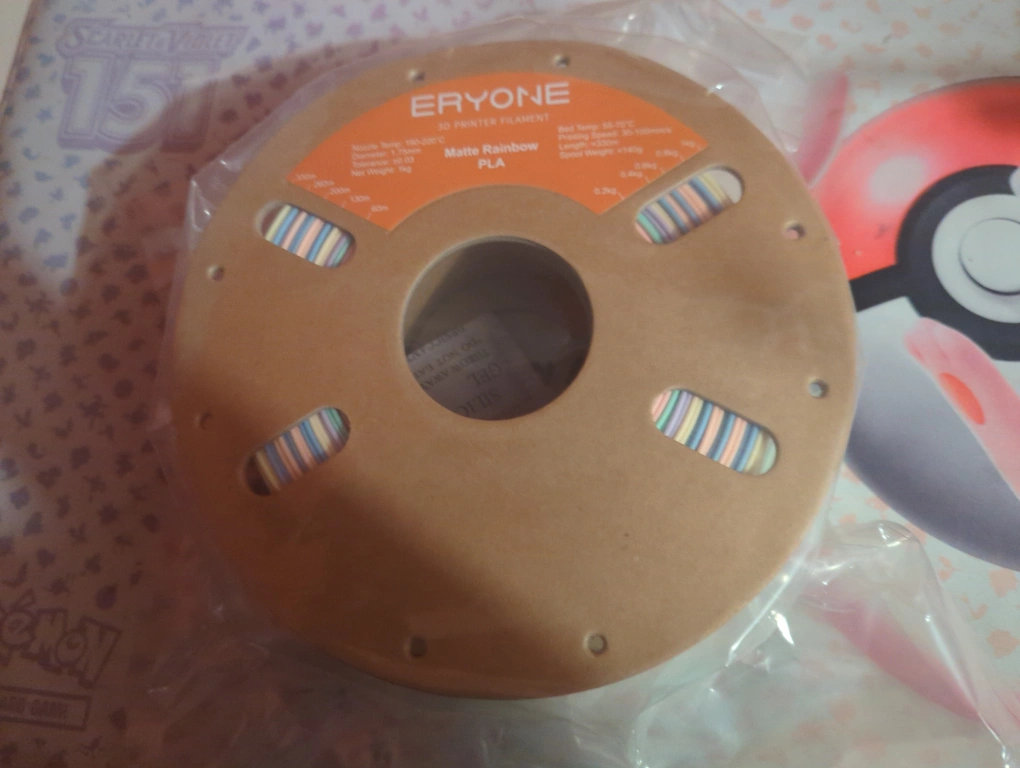 I'm selling a brand new roll of ERYONE Matte Rainbow PLA 3D printer filament - Nozzle Temp: 190-220°C - Bed Temp: 30-60°C - Printing Speed: 30-70mm/s - Net Weight: 1kg