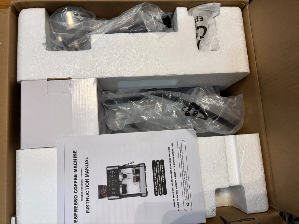 Professional Semi-Automatic Espresso Machine with Grinder & Frother New in box Pickup in Barrhaven, Mountshannon and Daventry street intersection. Fast 25-second brew after warm-up 30-position built-in grinder for consistent coffee texture 15 Bar pressure for rich espresso, cappuccino, or latte Stainless steel milk frother steam wand for creamy froth 2.8L removable water reservoir for easy refills Auto shut-off, cup warmer, and self-cleaning functions Sleek modern black design, ideal for home or office