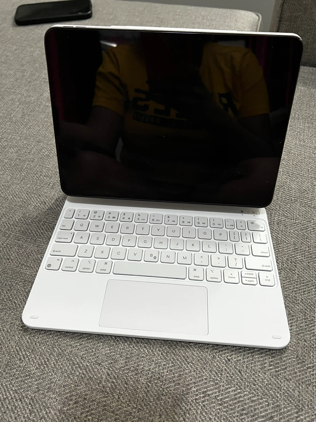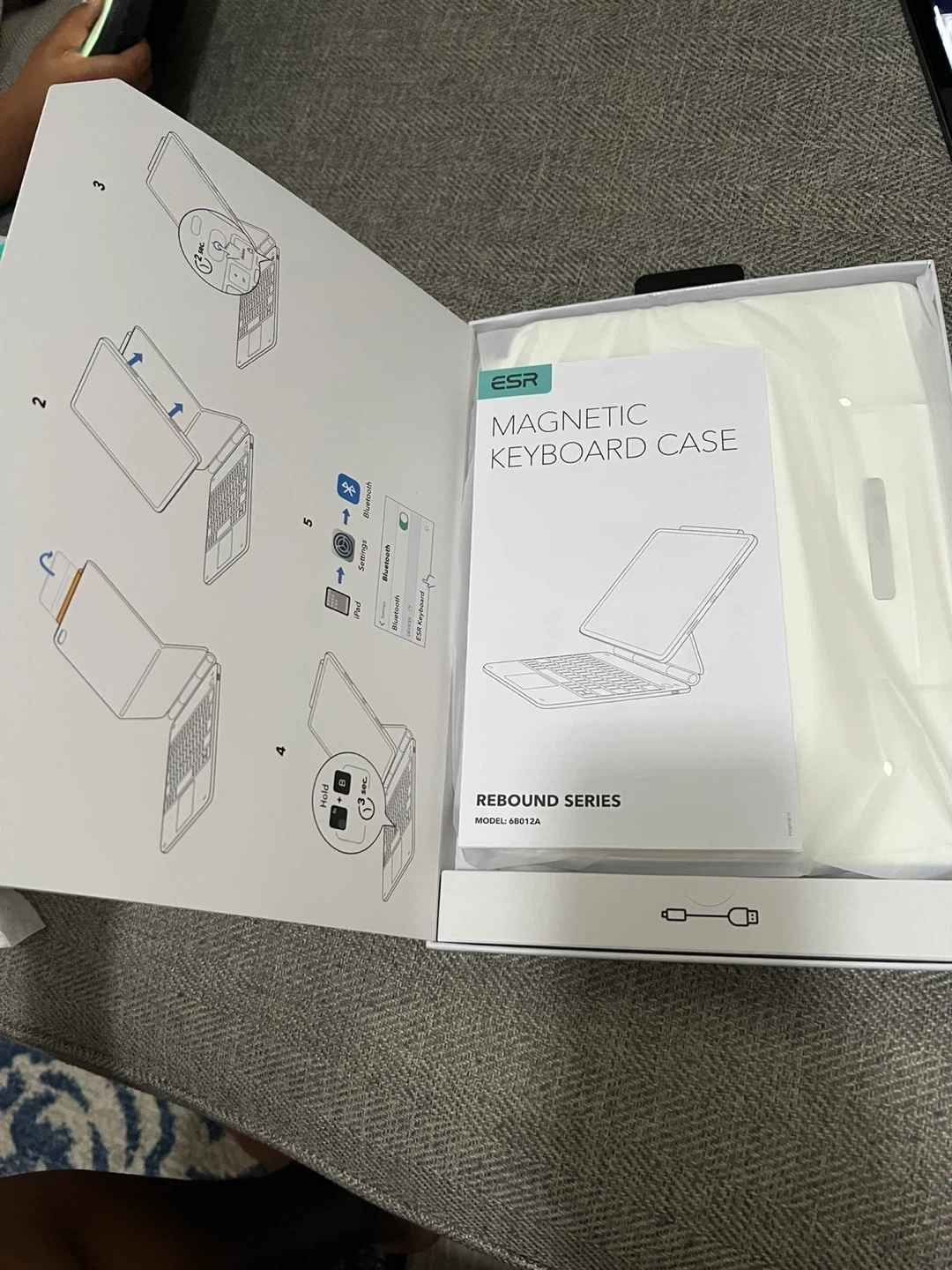 Selling an ESR Rebound Series magnetic keyboard case in white. It's in great condition and comes with the original box and instructions. This keyboard case is designed to magnetically attach to your tablet, making it easy to use on the go. ESR iPad Air 11 inch Case with Keyboard (M3/M2, 2025/2024), iPad Pro 11 (4th/3rd/2nd/1st Gen) & Air 5/4th Magic keyboard Case, Easy-Set Floating Cantilever Stand, Precision Multi-Touch Trackpad, White. Used twice only.