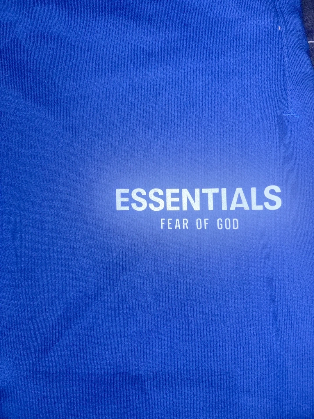 Selling a pair of Essentials Fear of God sweatpants in blue. They're in near to perfect condition and super comfy! They come in a size small and fit true to size.