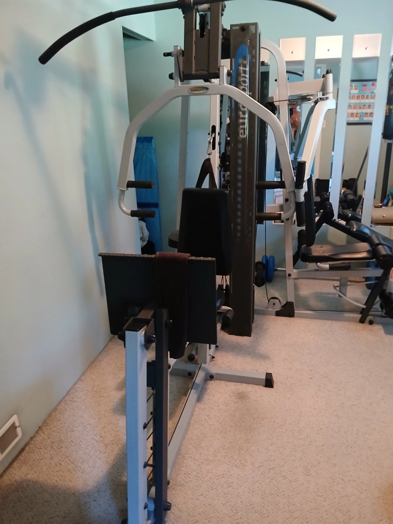 Selling a home gym, brand is Eurosport. Great for a variety of exercises. Includes an exercise guide poster.