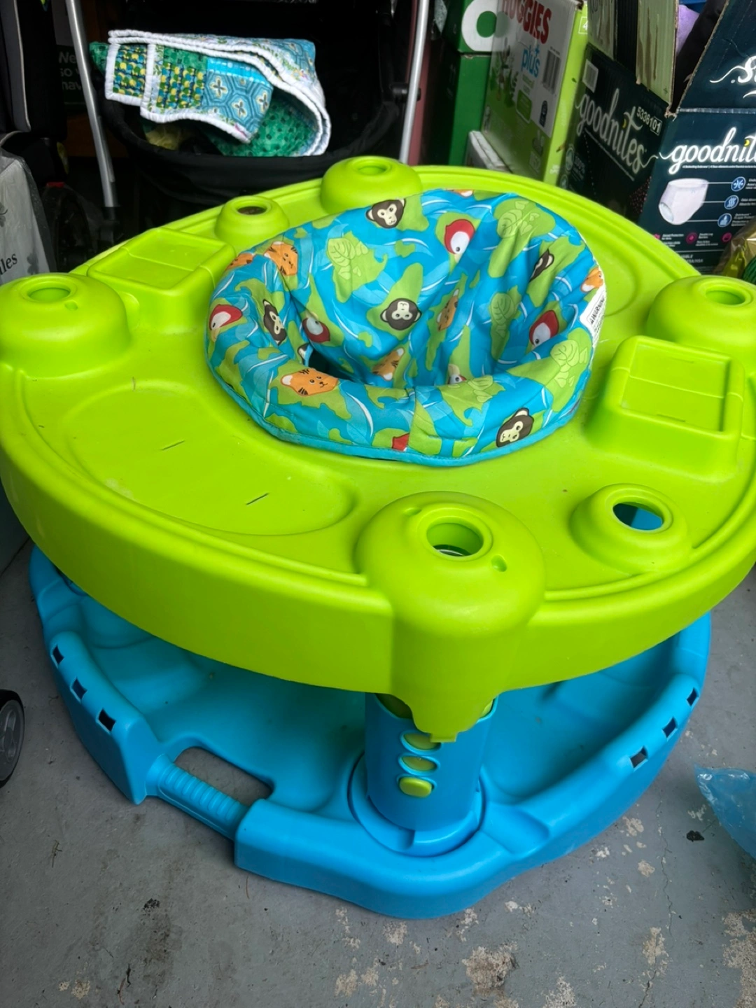 This is an Evenflo Exersaucer Triple Active Learning centre! It's in great condition and ready for a new home. It will keep your baby entertained and help them develop important skills. It has 3 Stages: Baby floor activity ma Sit - in Activity Centre Stand - up Activity Centre Great condition.
