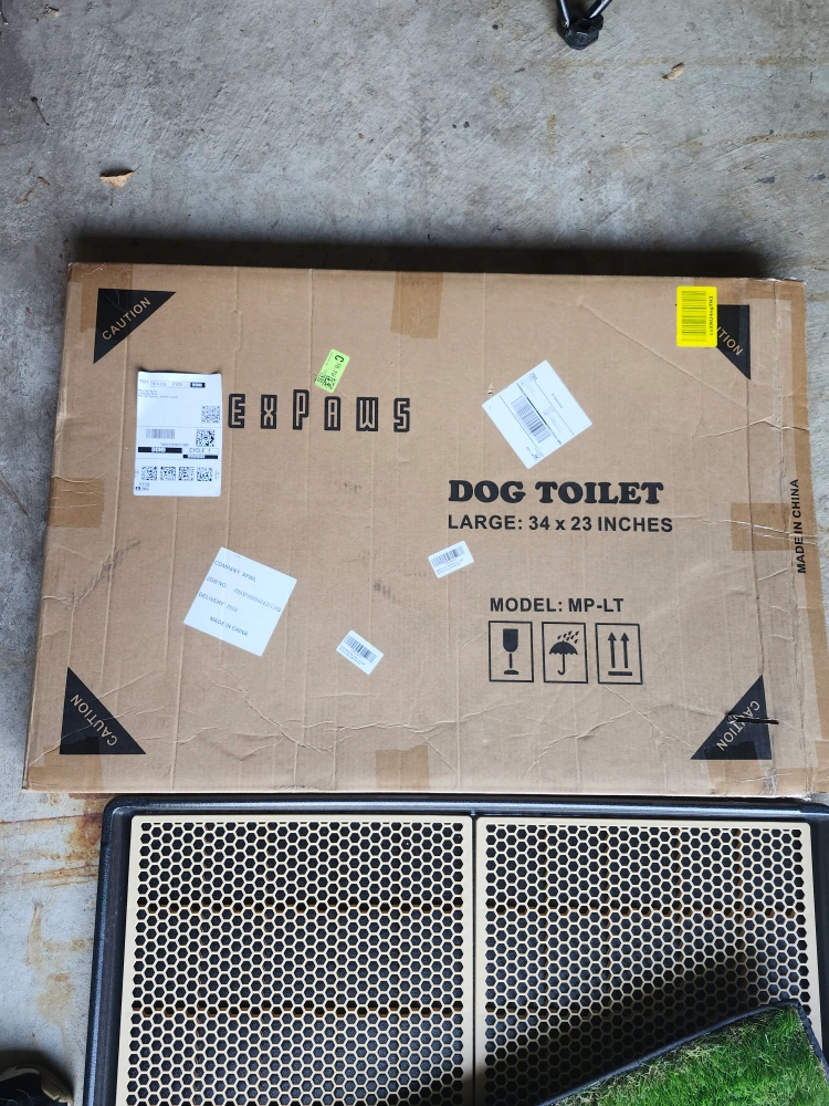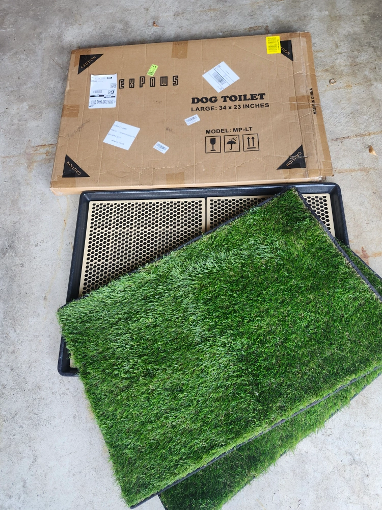 Selling a large Expaws dog toilet, sized at 34 x 23 inches. It's in great condition and comes with the box!