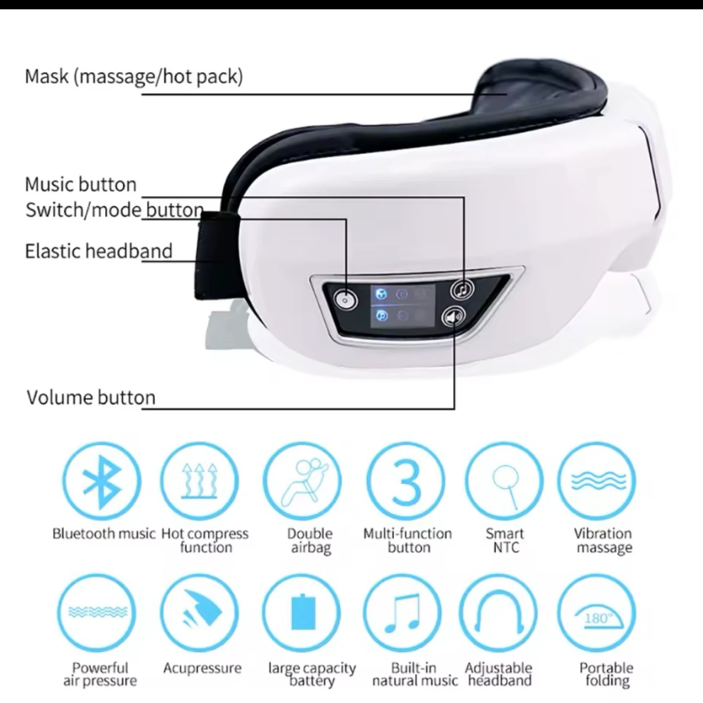 Relax and rejuvenate with this eye massager mask! It features constant temperature hot compress, which warms the eyes at 42°C to help relieve eye fatigue and headaches. It also has built-in music and vibration massage for extra relaxation. The mask is made with high-quality soft leather fabric and has an adjustable elastic headband for a comfortable fit
