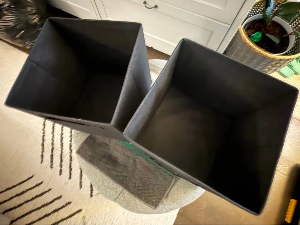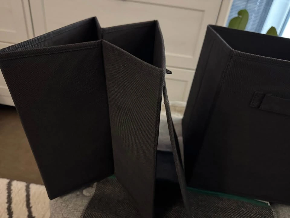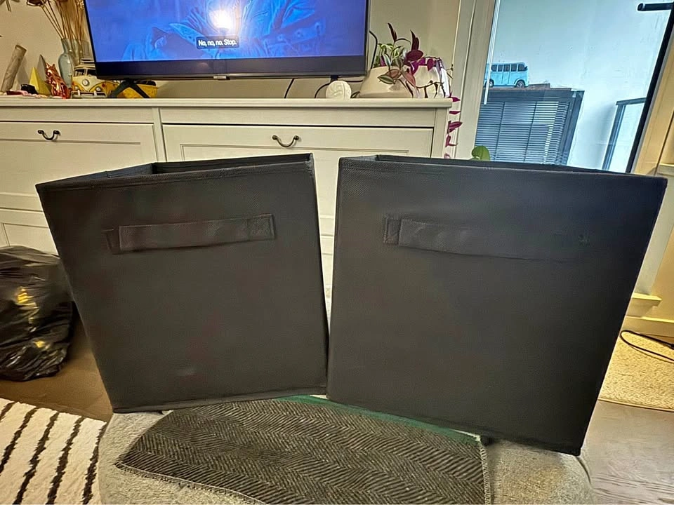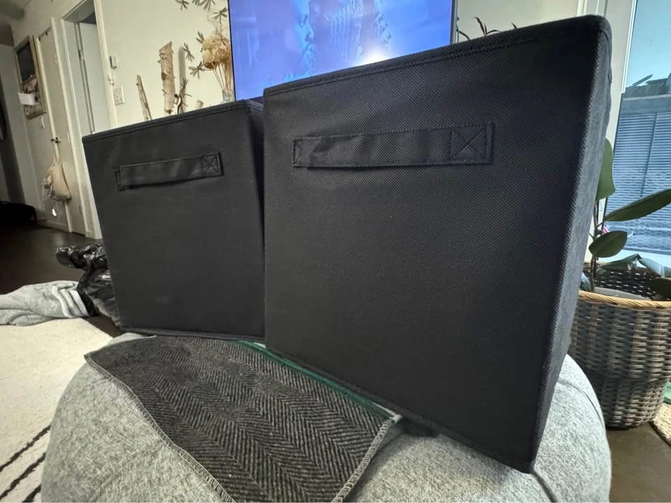 Collapsible fabric storage cubes. Black. 26.5cm cubed. $20 for the pair. Cash upon pick up only. Pick up in central Richmond.
