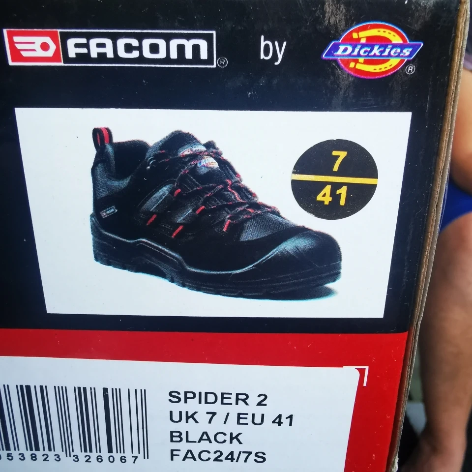 Selling a pair of Facom by Dickies Spider 2 safety shoes. They are black and in size 7 (UK) / 41 (EU). Perfect for work or any situation where you need some sturdy footwear! Comes with the original box.