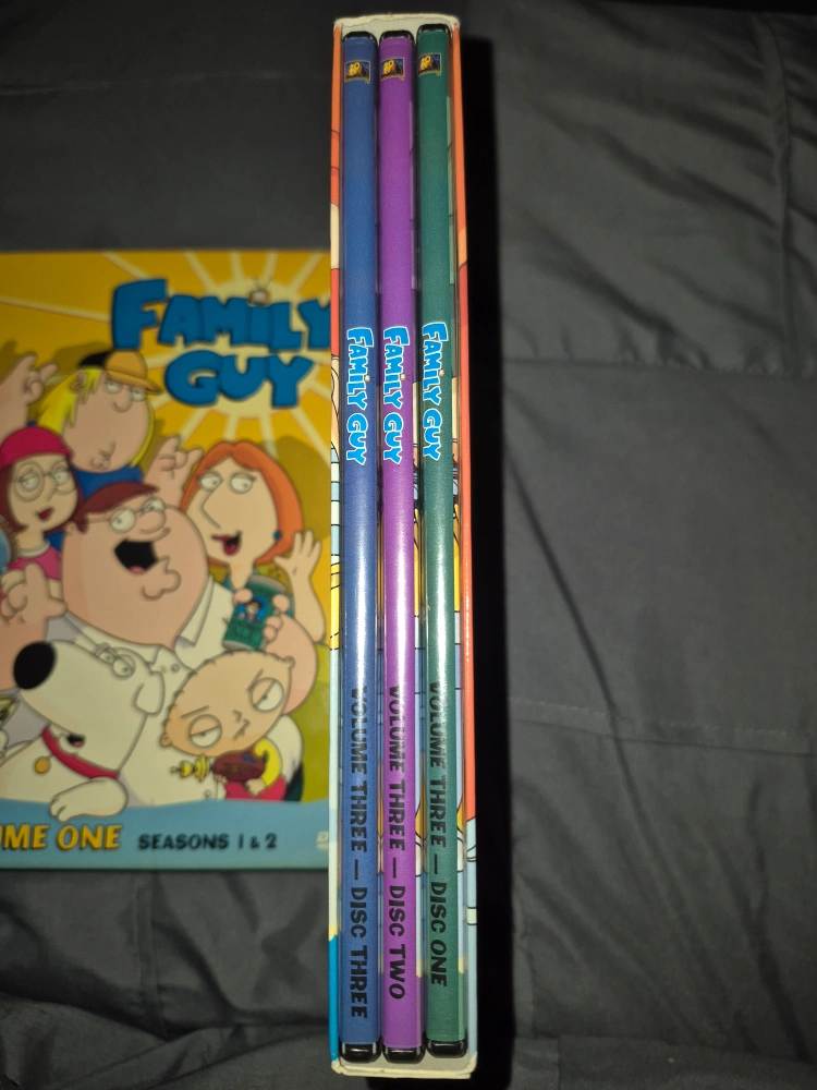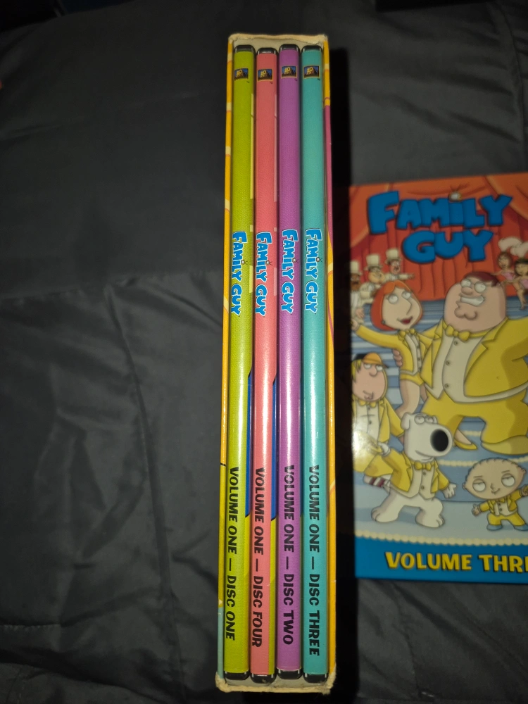 Selling a Family Guy DVD collection! It includes Volume One (Seasons 1 & 2), Volume Two, Volume Three, and Volume Four. Perfect for any fan of the show!