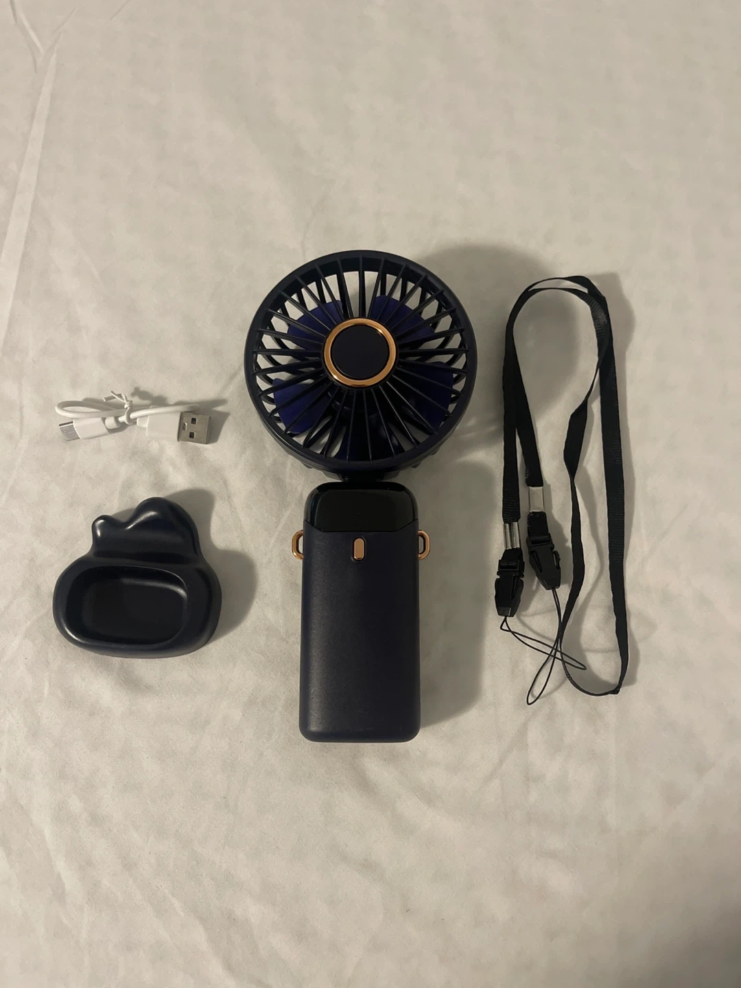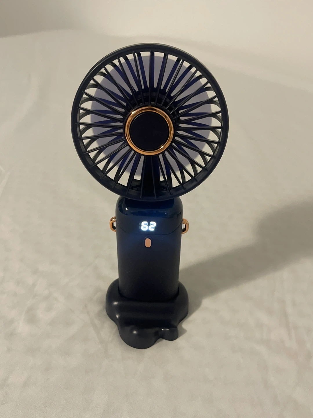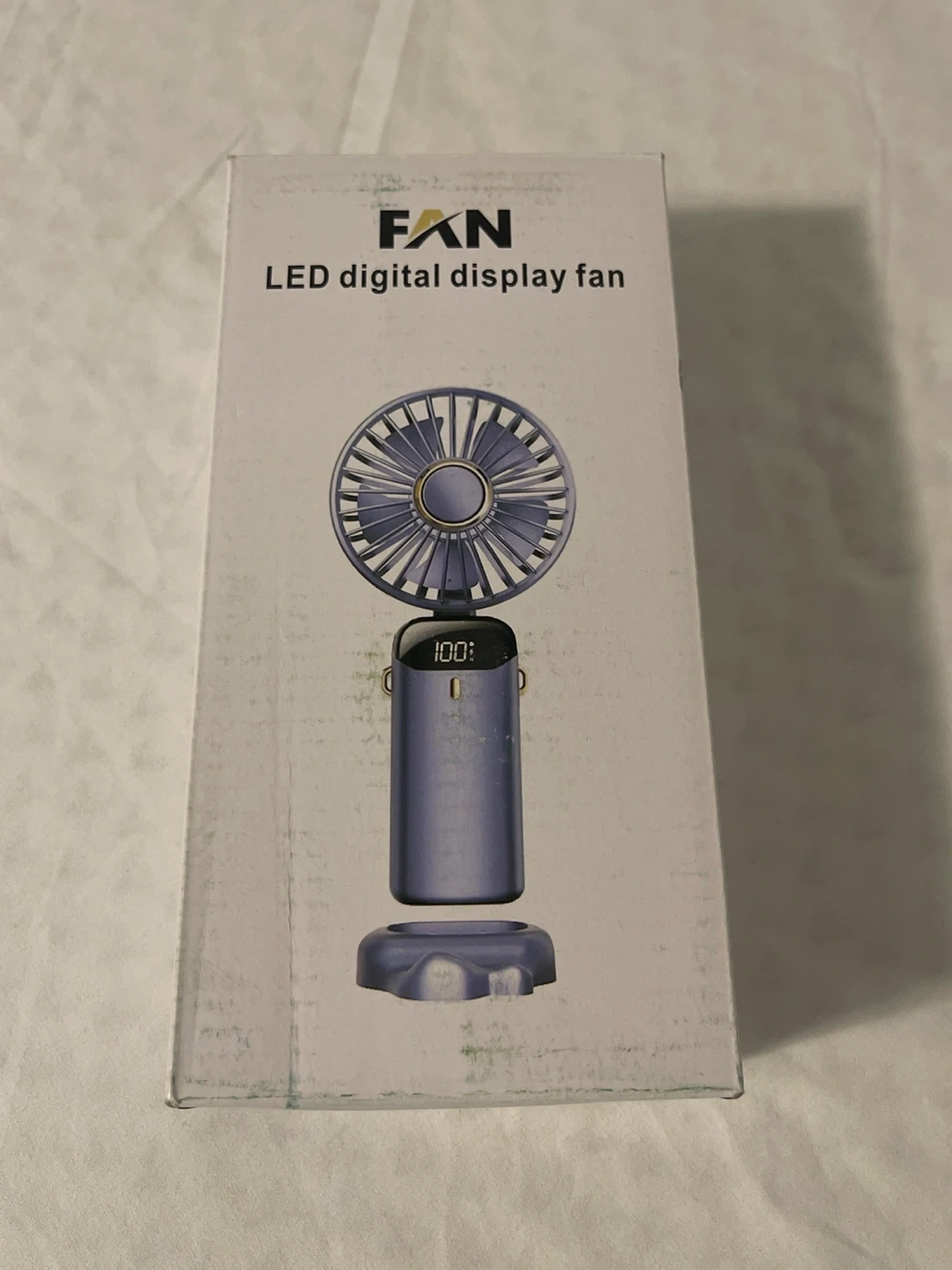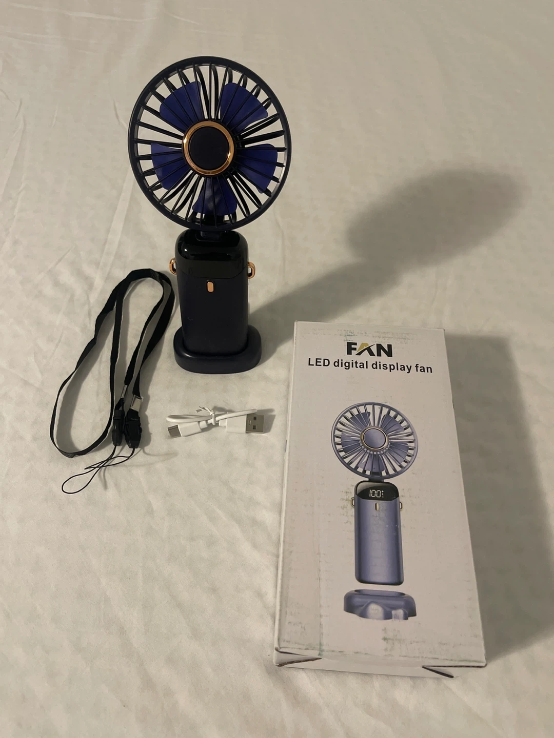 Selling a Hand Held FAN LED digital display handheld fan! It comes with its original box and includes a charger and lanyard. This fan is lightweight and portable, perfect for staying cool on the go