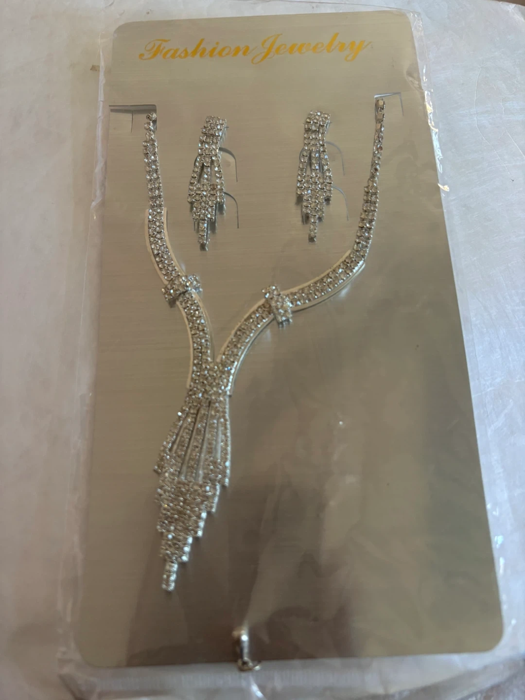 Brand new Fashion Jewelry necklace and earrings set! This set features a beautiful necklace and matching earrings, perfect for adding a touch of sparkle to any outfit. The set is still in its original packaging, never been worn!