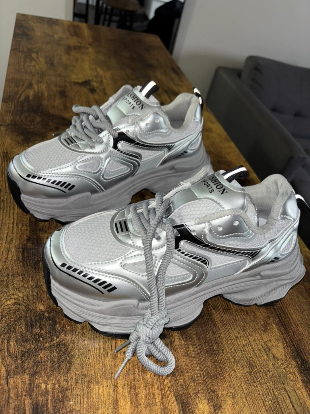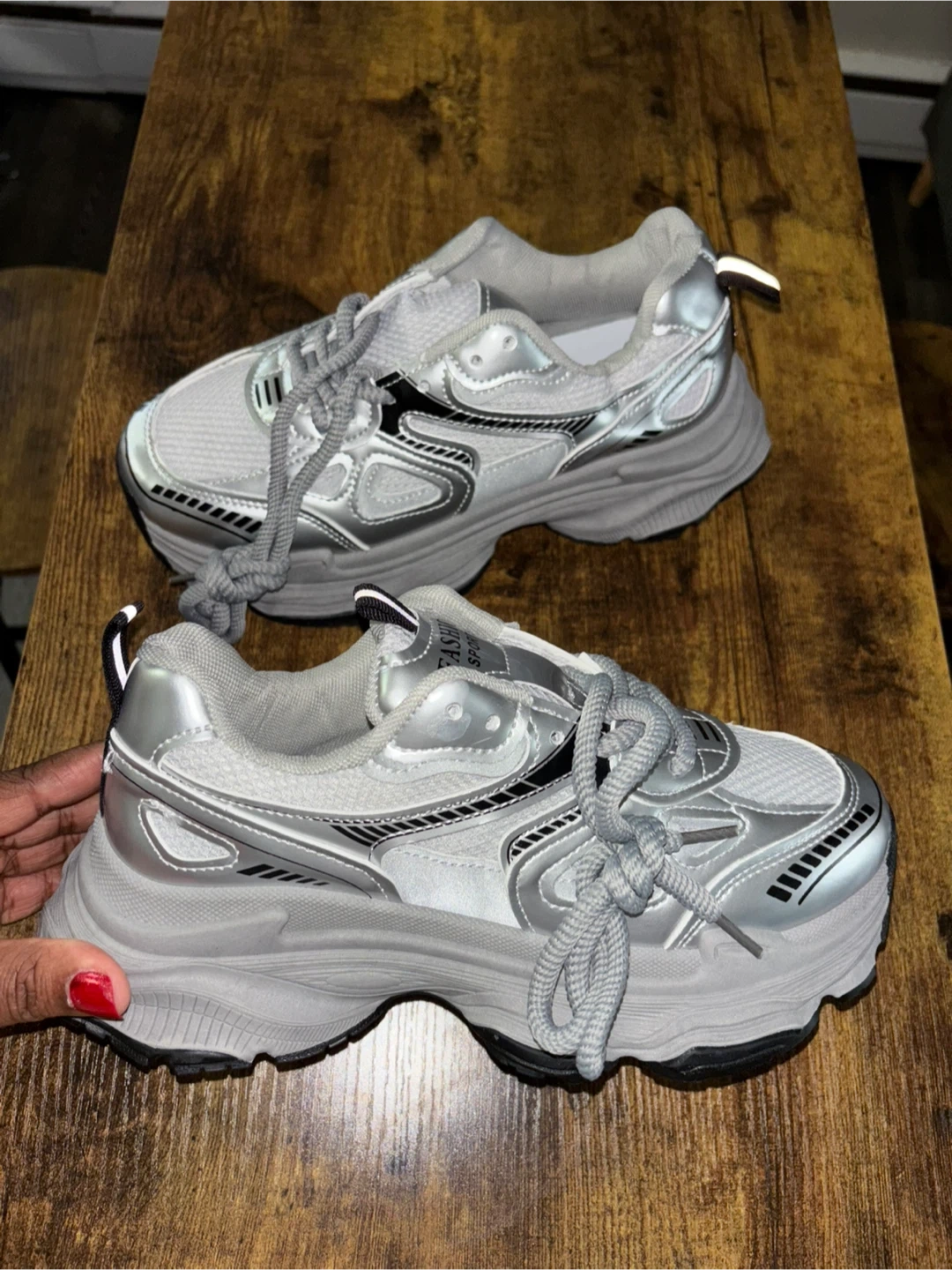Selling a pair of Fashion Sports sneakers in silver. They're new and ready for a new, never worn.