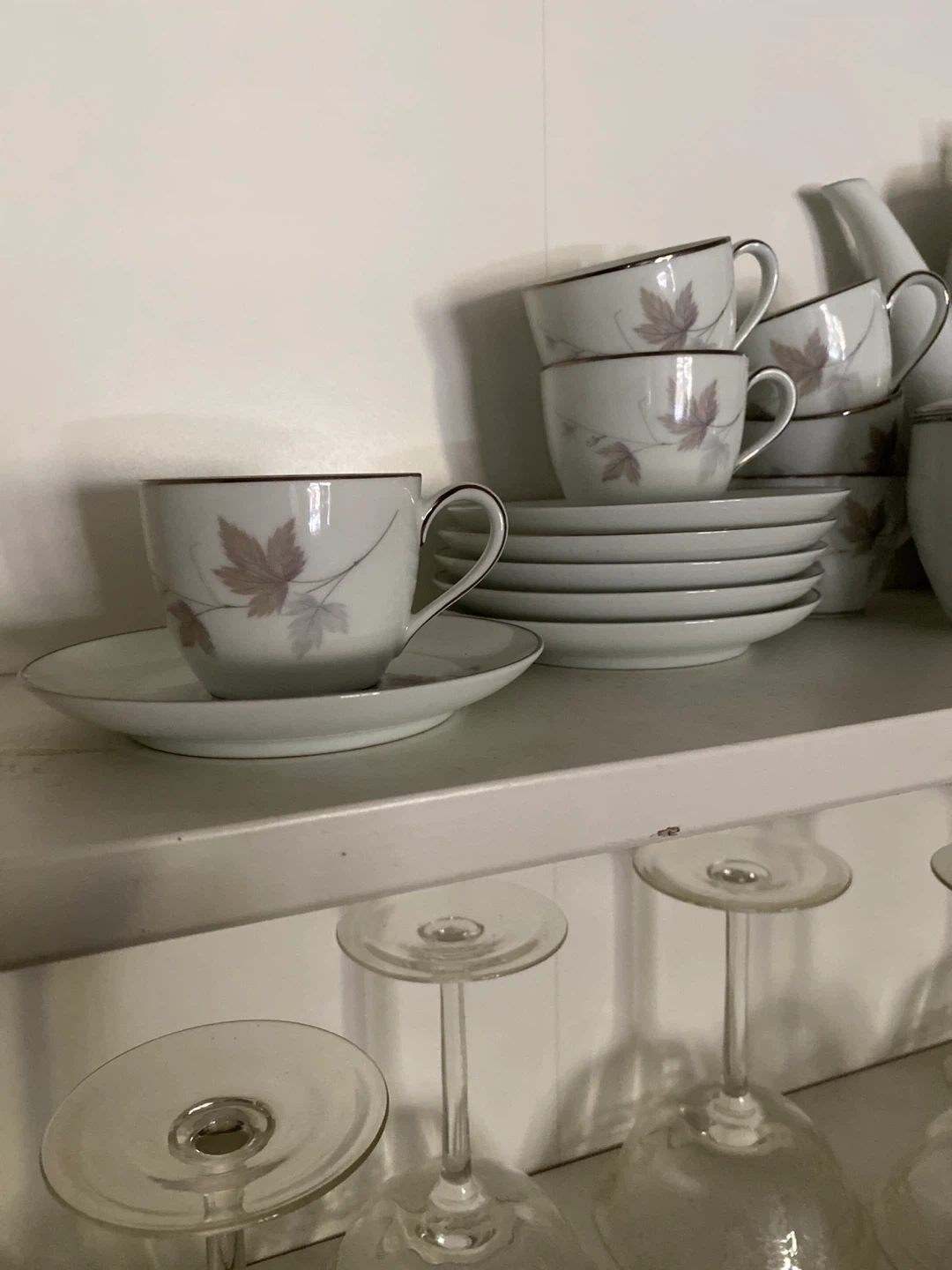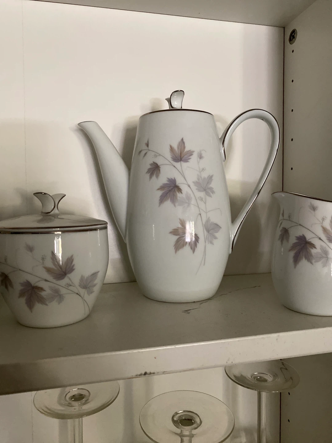 Selling a lovely fine Noritaki ceremonial tea set! It features a delicate maple leaf design. Includes a teapot, creamer, sugar bowl, 6 cups, and saucers. Perfect for afternoon tea or special occasions! Please note size. Mid-century … These were a gift to my mother in 1965 direct from Japan as a gift when meeting for the first time Moving sale Pick up only