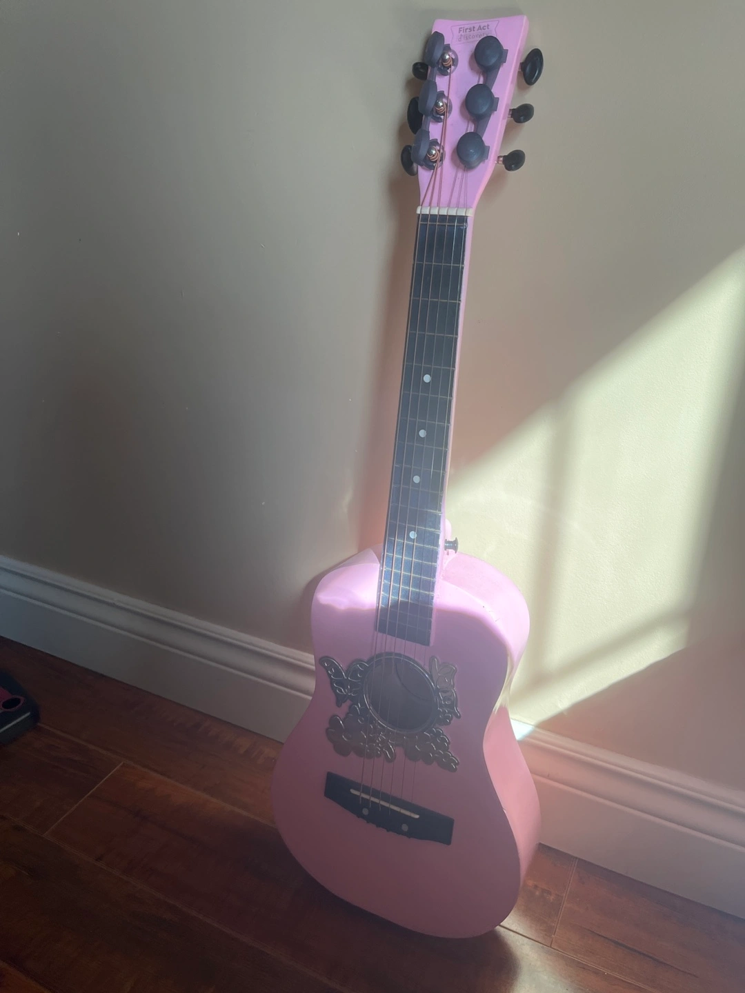 Selling a cute pink First Act Discovery acoustic guitar! It's in pretty good shape and perfect for beginners who want to learn to play.