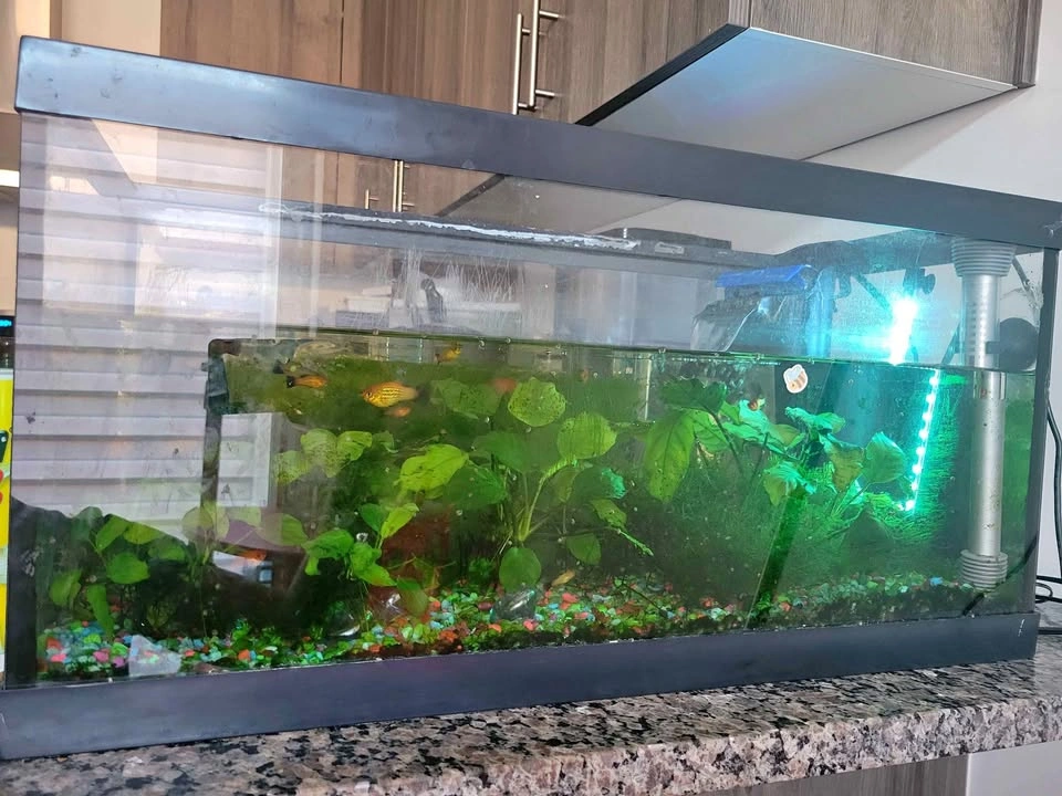 Selling a fully equipped fish tank – perfect for anyone looking for a ready-to-go setup! Tank dimensions: 23" x 12" x 12". Approx. 14.3 gallons / 54 liters. LED light. Fish food supply (enough for 1–2 years!) Comes with filter, heater, water conditioner, net, gravel, and décor. Clean, well-maintained, no leaks or cracks. Great for beginners or hobbyists – just plug in and enjoy!