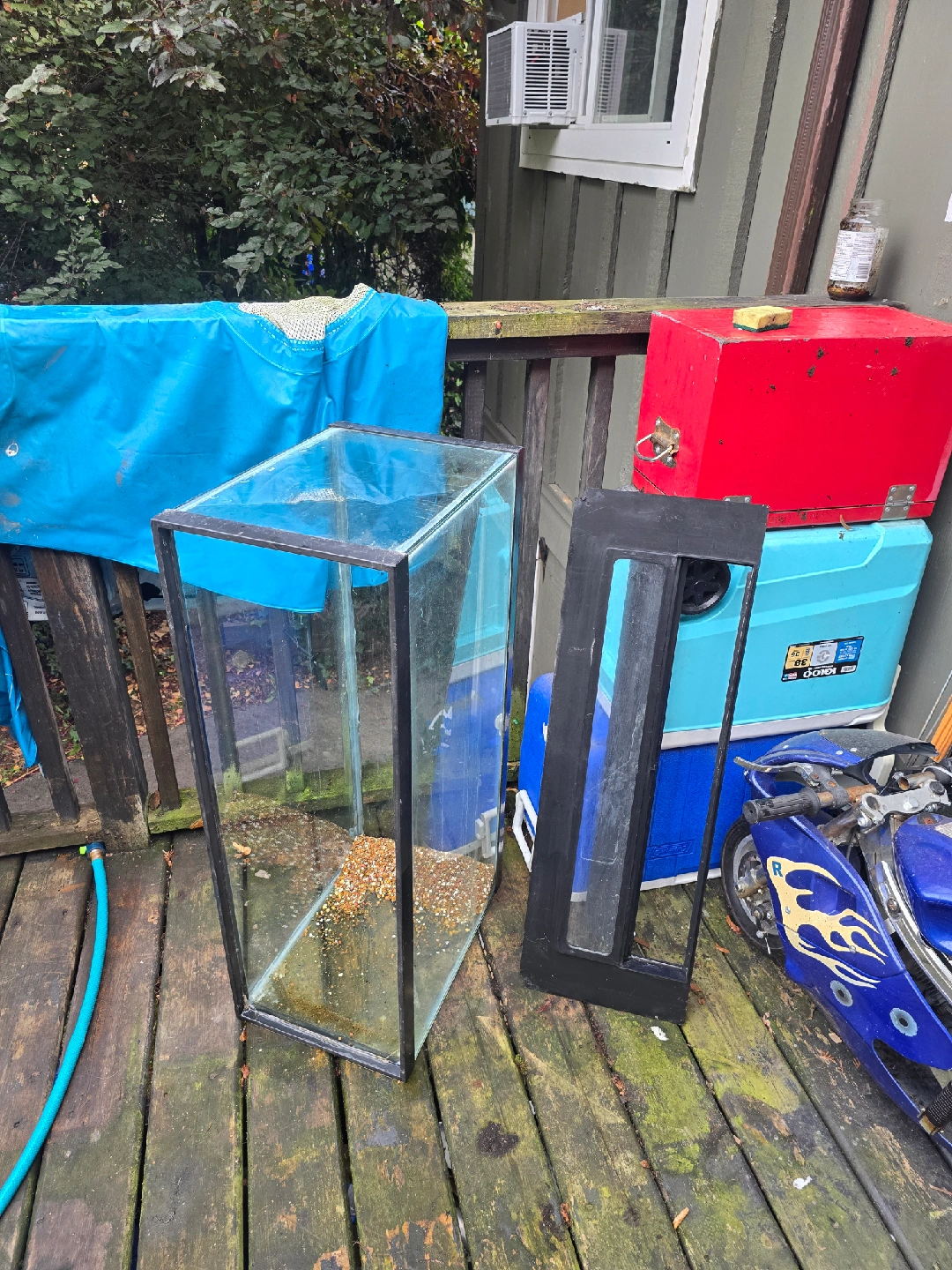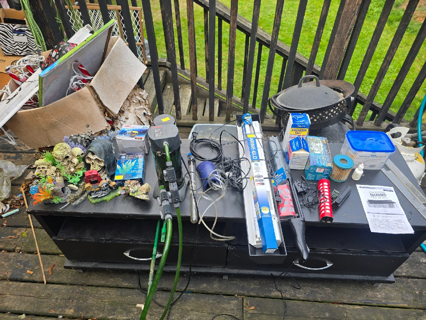 33 gallon fish tank come with heater bubbler filter one glow light one regular decorations food and a vacuum to clean easy and do water changes easily also a huge bucket of rocks to add asking 200 has everything you need and more