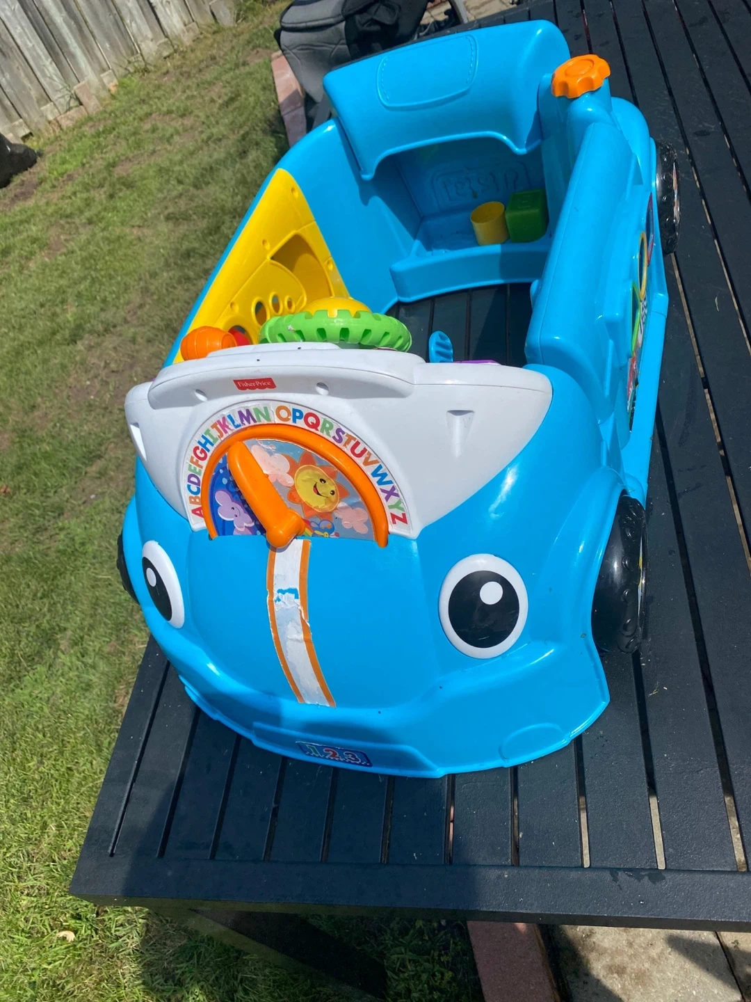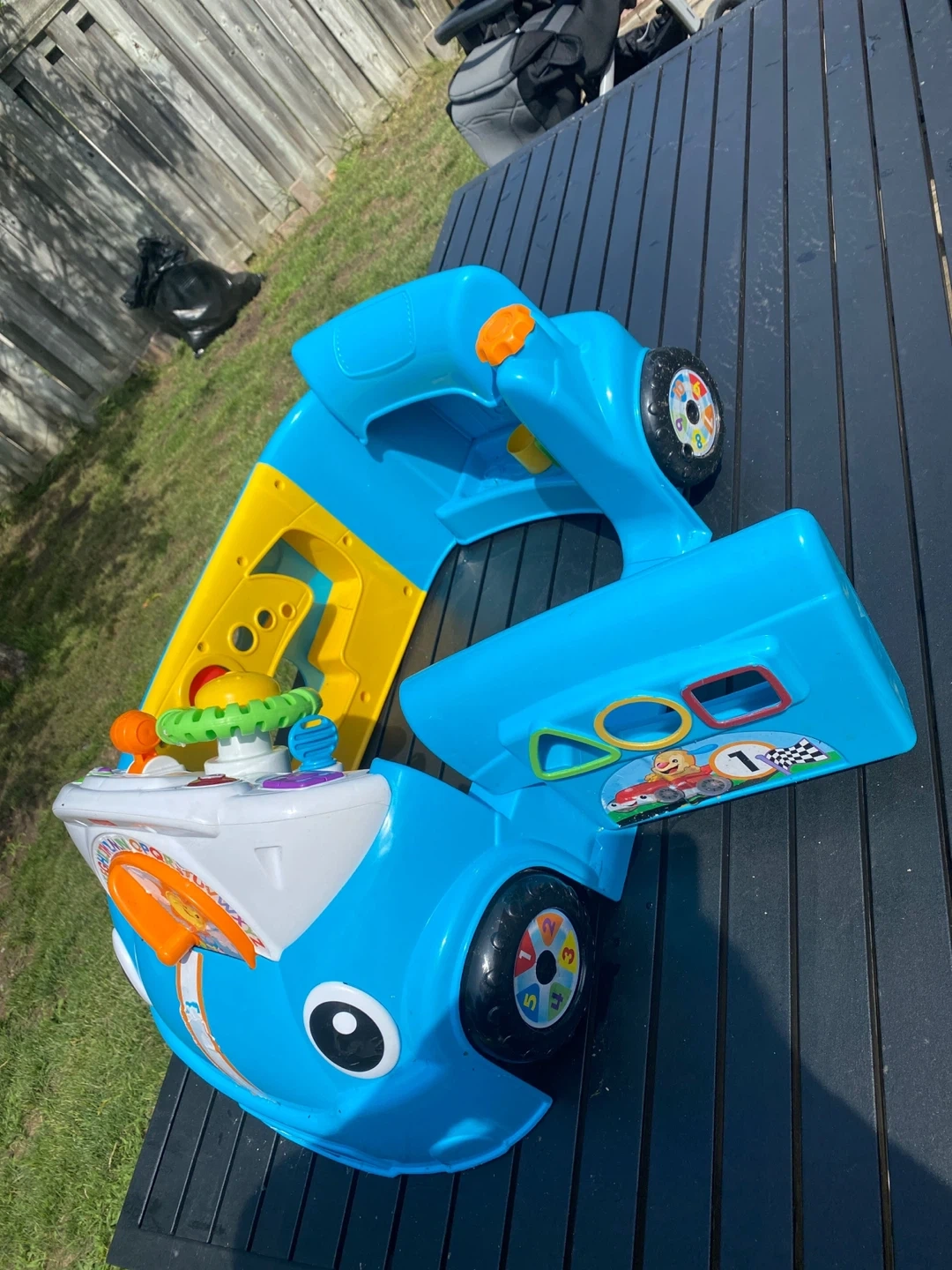 The Fisher-Price Crawl Around Car is perfect for your little one! It's in great condition and ready for a new home. This interactive toy encourages crawling and exploration with its fun sounds and activities