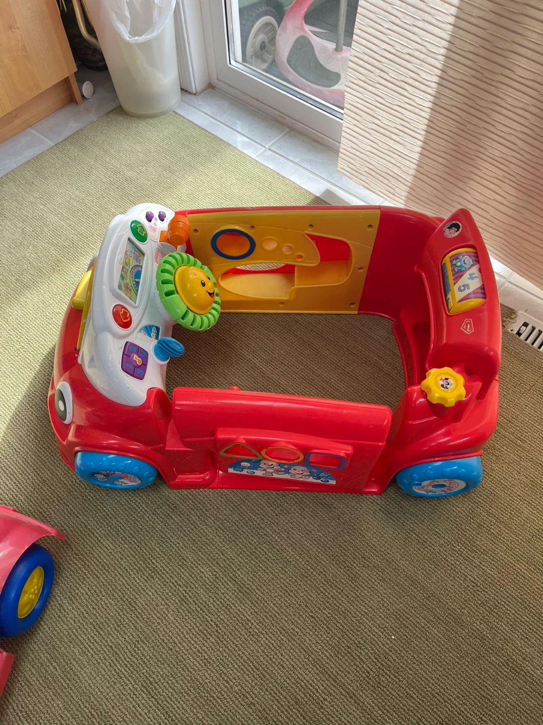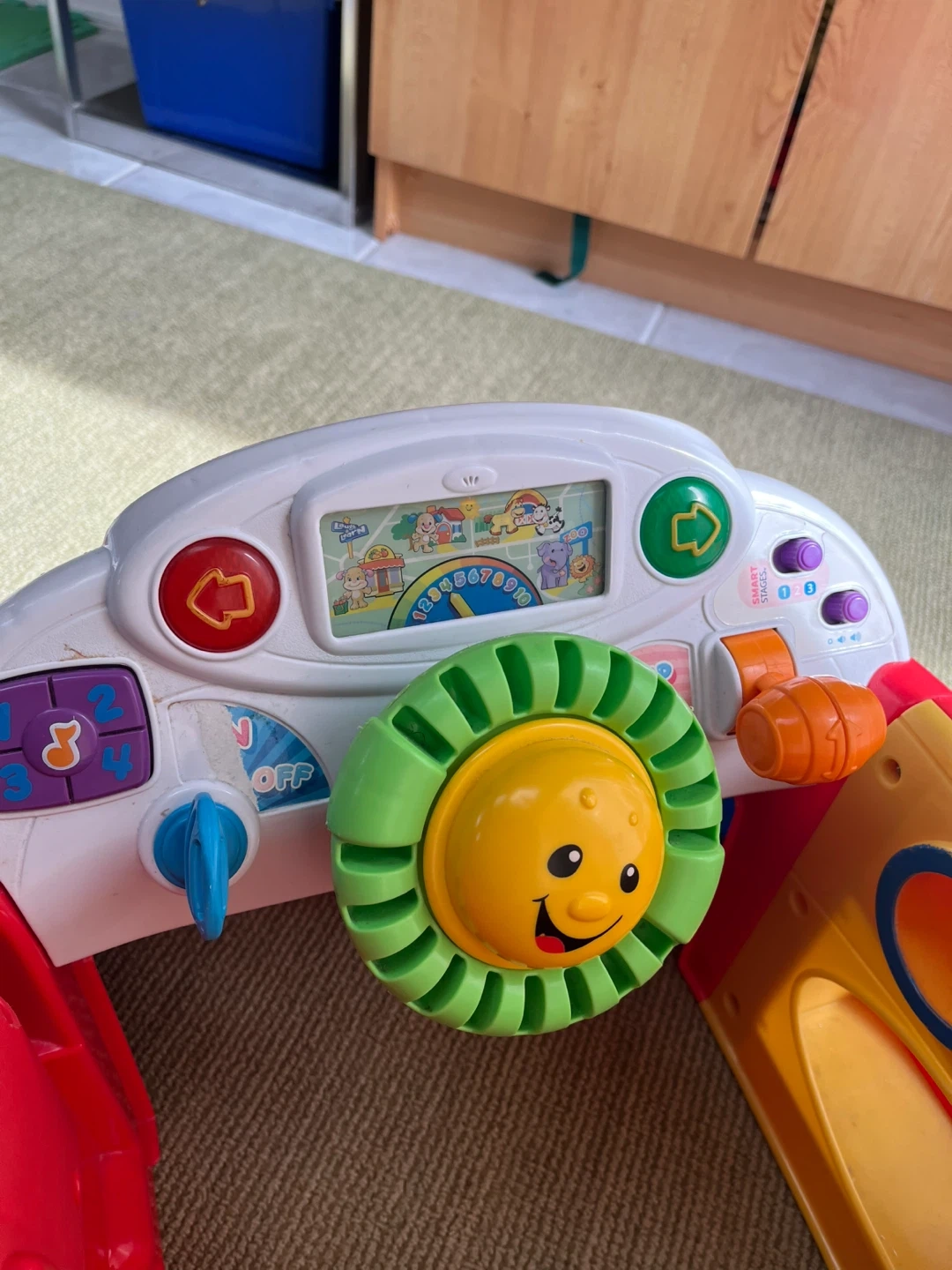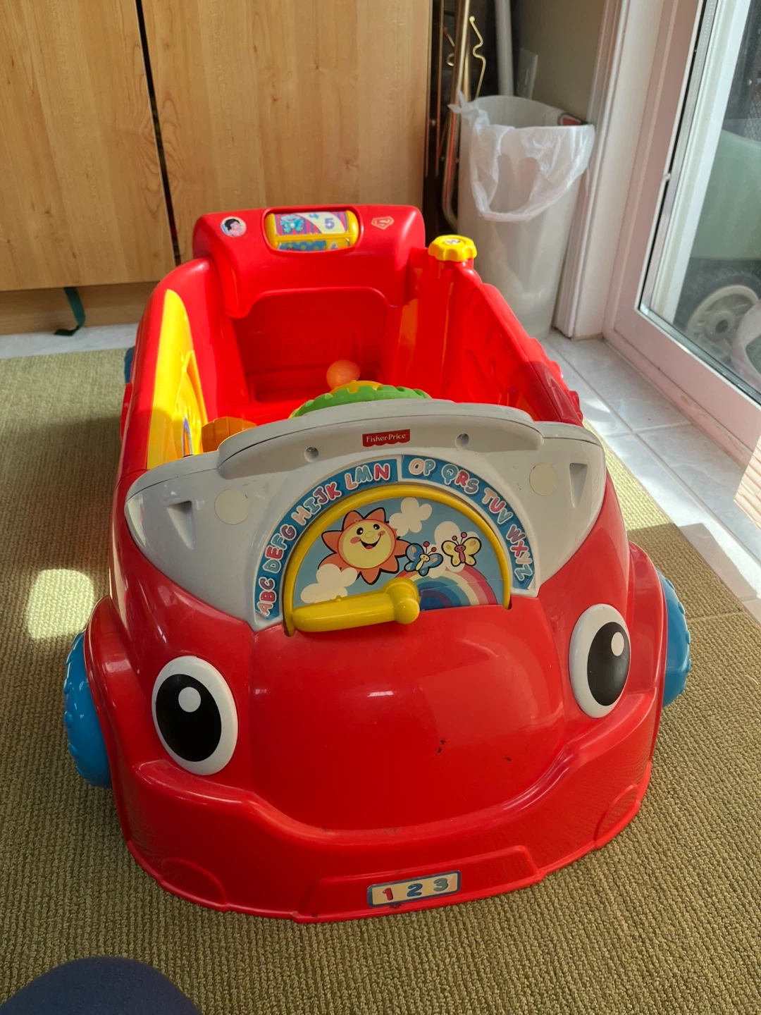 The Fisher-Price Laugh & Learn Crawl Around Car is ready for new adventures! Great for babies and toddlers who are learning to crawl and explore. It's in good used condition and ready for a new home!